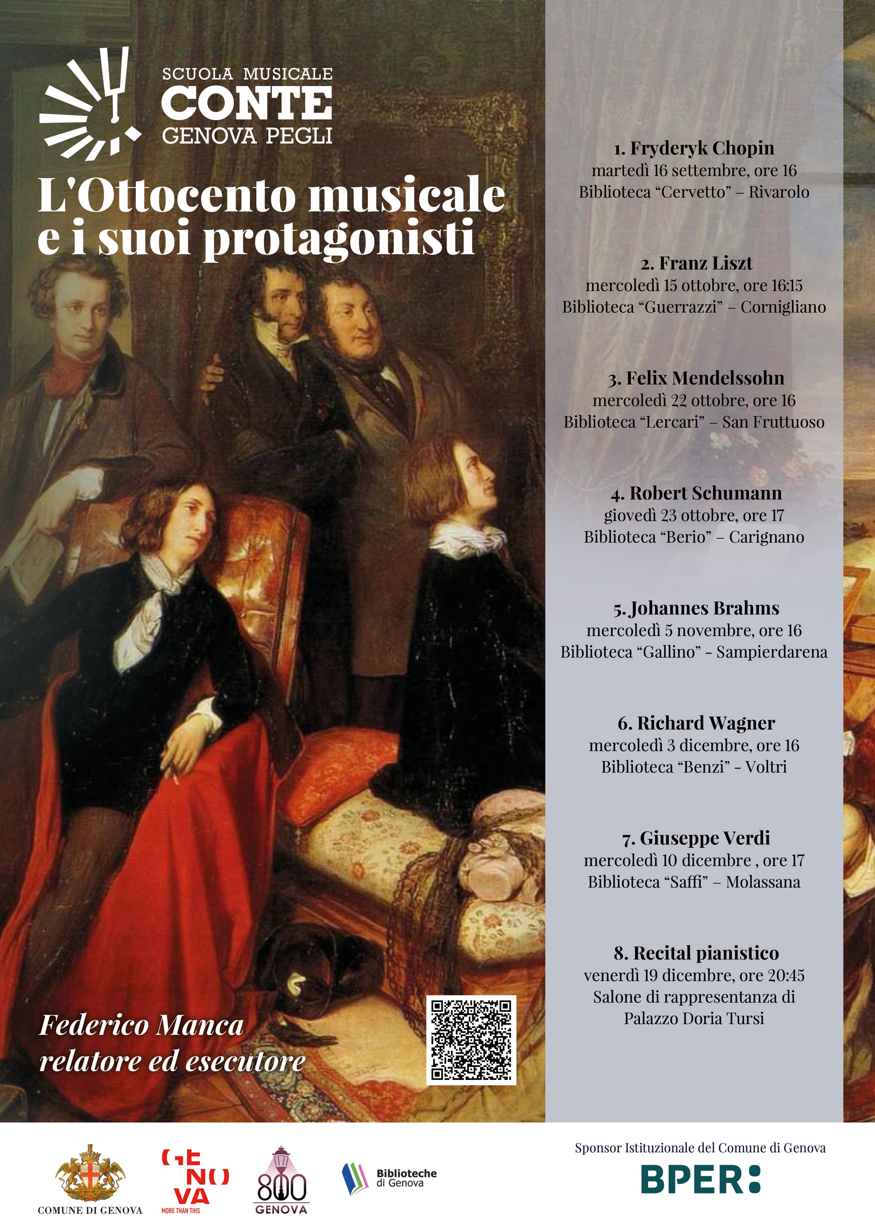 Il Sistema Bibliotecario del Comune di Genova, in collaborazione con la Scuola Musicale Giuseppe Conte, lancia un affascinante progetto culturale aperto a tutti: “L’Ottocento musicale ed i suoi protagonisti”.
