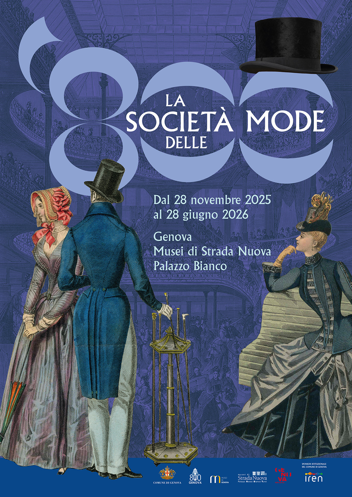La mostra ‘800. La società delle mode a cura di Andrea De Pascale e Gabriella Campanella a Palazzo Bianco, esplora la complessa relazione tra moda, società e ascesa borghese attraverso le straordinarie testimonianze del XIX secolo conservate nelle civiche Collezioni tessili, nate nel 1892. Un viaggio nel secolo che ha codificato l’idea moderna di eleganza, trasformando abiti e accessori in un linguaggio sociale, strumento di affermazione, distinzione e riconoscimento.