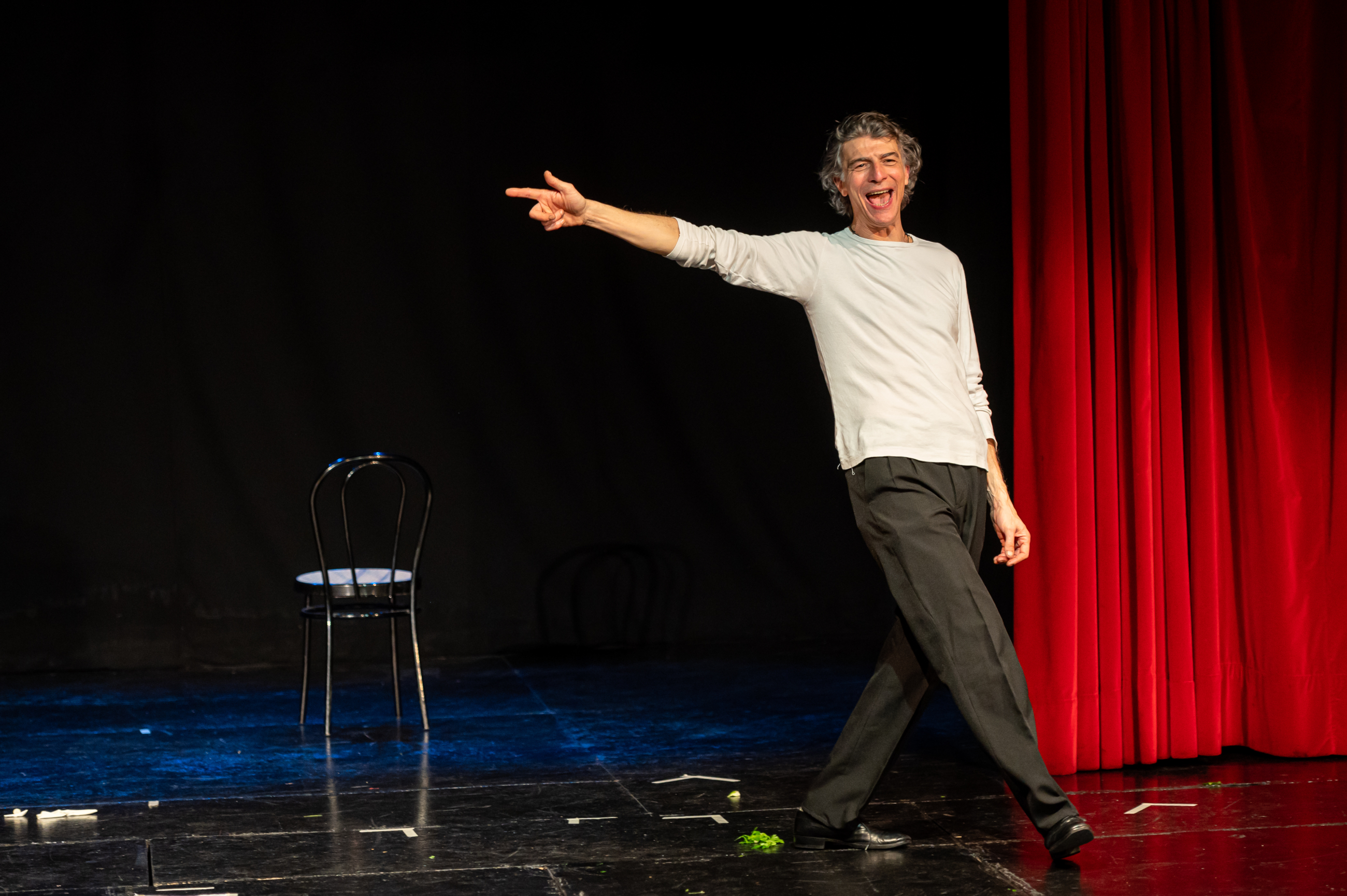 Attraverso un meccanismo casuale, gestito dall’artista con la complicità del pubblico in sala, Alessandro Bergallo, cabarettista e attore anche del Teatro della Tosse, va in scena senza rete, in equilibrio nel delirio della più assurda e divertente confusione mentale.