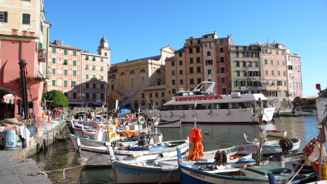 Camogli, che si raggiunge facilmente in auto e in treno da Genova, squaderna davanti agli occhi del visitatore la sua scenografica passeggiata a mare, incorniciata dalla serie continua delle facciate colorate e da decine di ristorantini, panettieri dove gustare ottima focaccia, negozietti di oggetti marinareschi, e una lunga spiaggia di ciottoli; in fondo, su uno sperone di roccia scura, la chiesa dell’Assunta e il Castello si alzano a protezione del borgo, regalando tramonti indimenticabili e fotografie perfette. Il porticciolo che brulica di pescherecci, i vicoli stretti e ripidissimi, la passeggiata lungo il molo fino al piccolo faro: ogni scorcio a Camogli regala un’emozione.