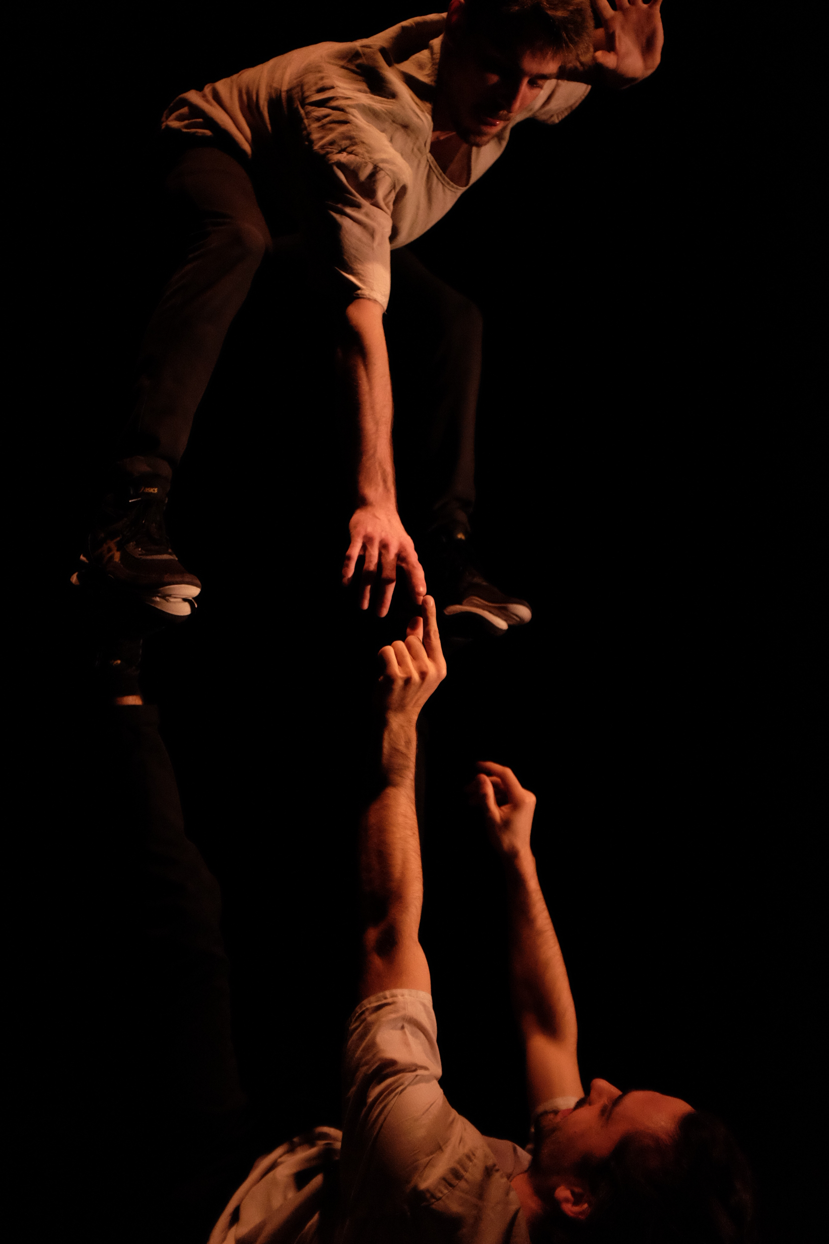 Un musicista sperimentale, un circense sperimentatore e un tecnico brillante condividono lo spazio, dove c’è uno non esiste l’altro, lo spazio che resta lo occupa la vita. Il tempo di una conversazione spettacolare tra tre artisti amici da anni, un insieme di sogni, un susseguirsi d’idee, di sentimenti e scherzi. Il dialogo è in scena, la danza, il circo, le note e le parole si susseguono uno dopo l’altro e la conversazione si consuma fino a quando non si ha più nient’altro da aggiungere. Finché alla fine, nell’ultima luce, l’idea di una realtà diversa e razionale sbiadisce gradualmente, il sogno si dissolve lasciando tutto, per un attimo di tempo nel vuoto. (Durata 55’ - Tout public)