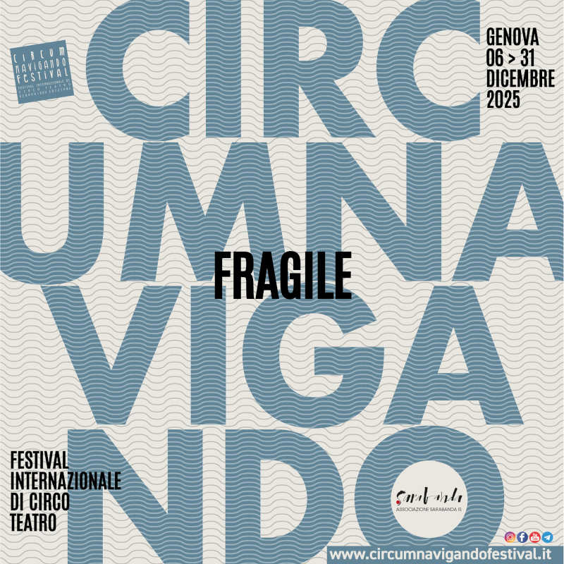 Fragile è il tema di un' edizione di Circumnavigando Festival Internazionale di Circo Teatro - che segna il XXV anniversario di Circumnavigando, il più antico festival di circo-teatro in Italia. Un titolo scelto per richiamare alla mente qualcosa di raro e delicato, come un cristallo prezioso da curare e preservare perché unico nella sua fragilità, ma allo stesso tempo potente nelle sue manifestazioni. Negli spettacoli scelti quest’anno, la drammaturgia del corpo circense si confronta con la materia e gli oggetti in un gioco sempre più articolato e sorprendente che racconta la necessità di attenzione e di cura verso noi stessi e il mondo, nell'infinitezza smaterializzata della nostra contemporaneità.