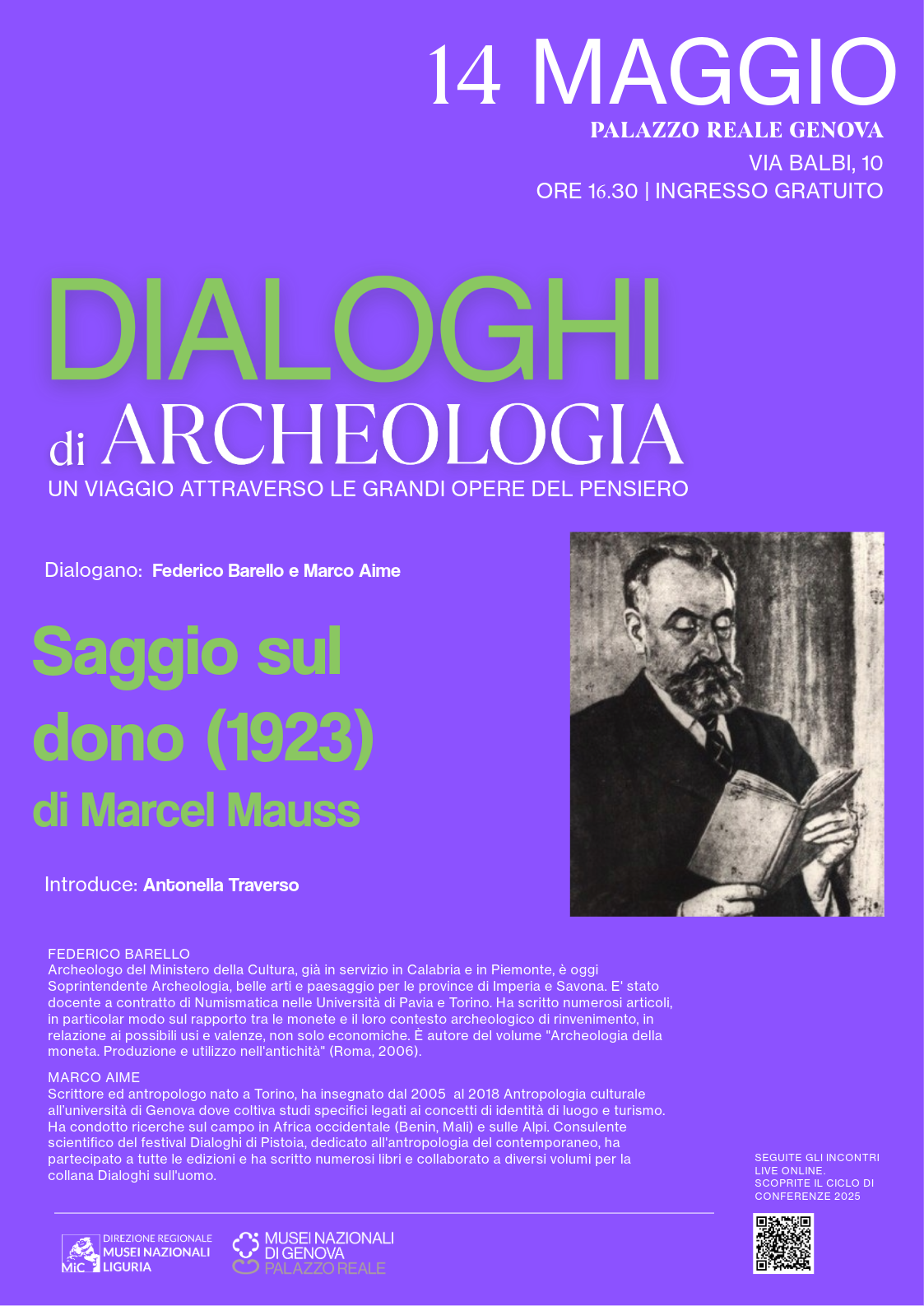 Protagonista dell’incontro à il celebre saggio di Marcel Mauss, “Saggio sul dono” (1923), fondamentale per la storia dell’antropologia. Un confronto sui temi dello scambio, della reciprocità e del valore sociale del dono.