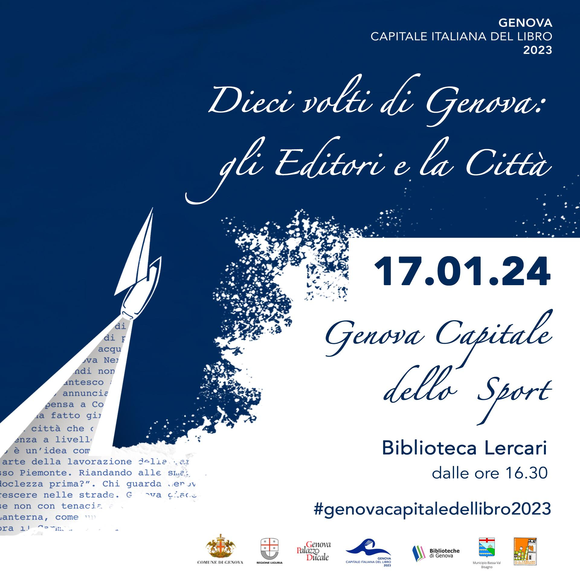 Prosegue il ciclo «Dieci volti di Genova: gli Editori e la Città» degli Editori Genovesi per Genova Capitale Italiana del Libro con l’incontro «Genova Capitale dello Sport» alla Biblioteca Lercari, mercoledì 17 gennaio 2024 alle 16,30