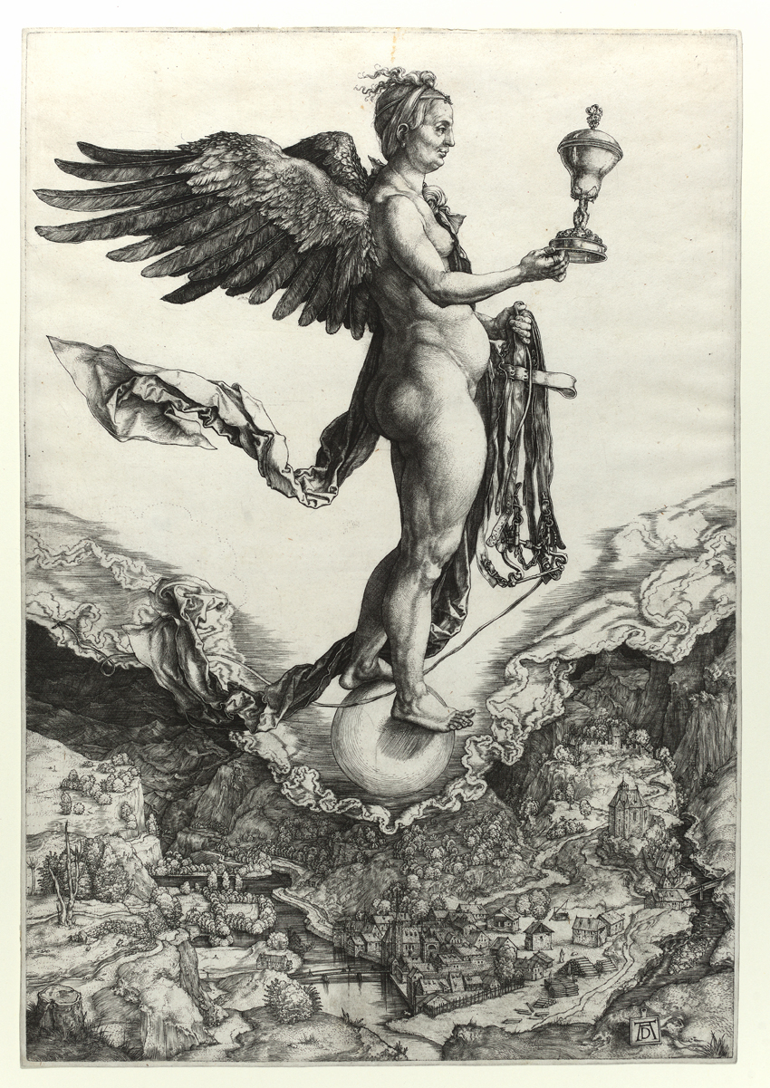 In mostra 54 bulini e 2 acquaforti, che consentono al visitatore di seguire l’evolversi dello stile e della perizia tecnica dell’artista e i cambiamenti di registro nelle diverse tematiche da lui affrontate: dalle prime stampe, in cui l’influenza dei maestri nordici precedenti è più evidente, come ne "La sacra famiglia con la libellula" (1495 c.) o nella "Giovane donna insidiata dalla morte" (1495 c.), alla creazione di uno stile personalissimo, con immagini dalla complessa e affascinante simbologia, come ne "La grande fortuna" (1501 c.) o ne "La strega cavalca una capra" (1505 c.), bulini fondamentali per la comprensione dell’iter artistico di Dürer sia per l’altissimo virtuosismo tecnico che per la profondità psicologica e la ricchezza di significati simbolici.