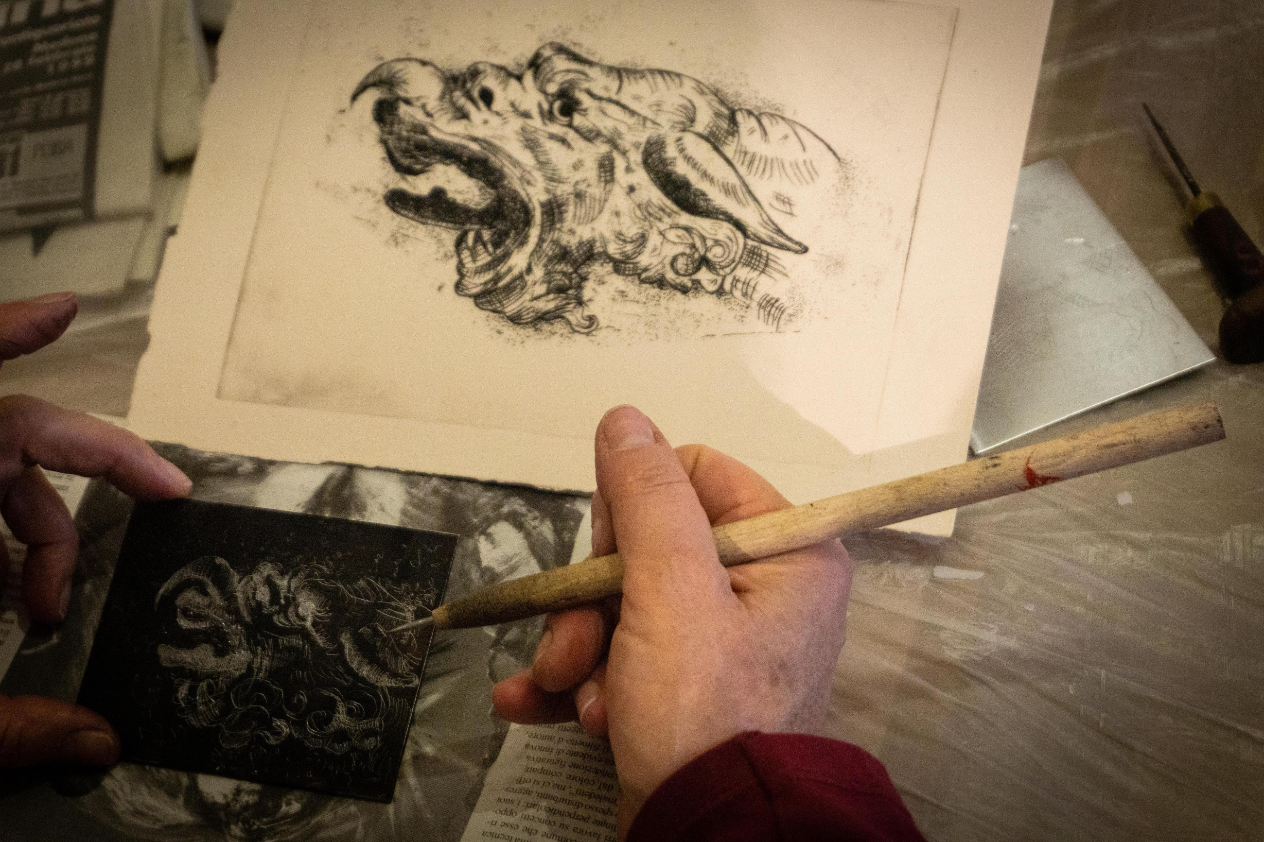 Laboratorio La stampa di traduzione. Laboratorio pratico di incisione a bulino e acquaforte con Luca Daum - docente di Grafica d'Arte dell'Accademia