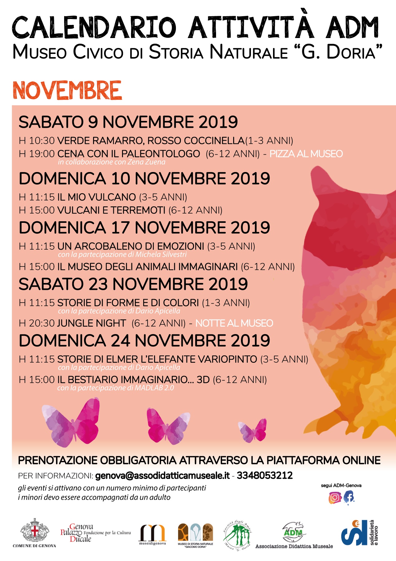 Attività ADM nel il mese di Novembre per bambini e famiglie al Museo Civico di Storia Naturale “G. Doria” di Genova, uno dei musei più grandi e prestigiosi d’Italia.