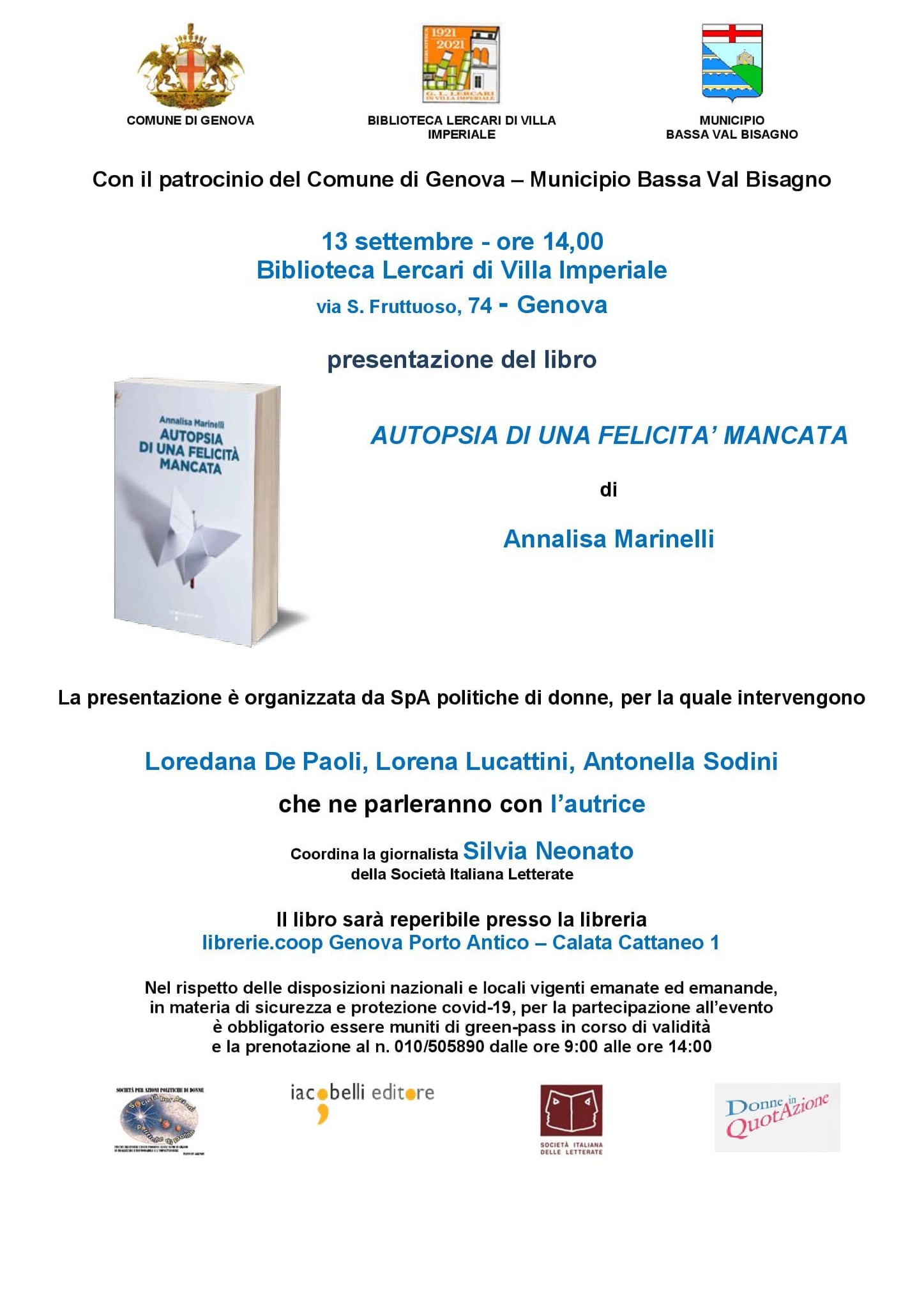 Presentazione del libro : "Autopsia di una felicità mancata" di Annalisa Marinelli, edizione Iacobelli.