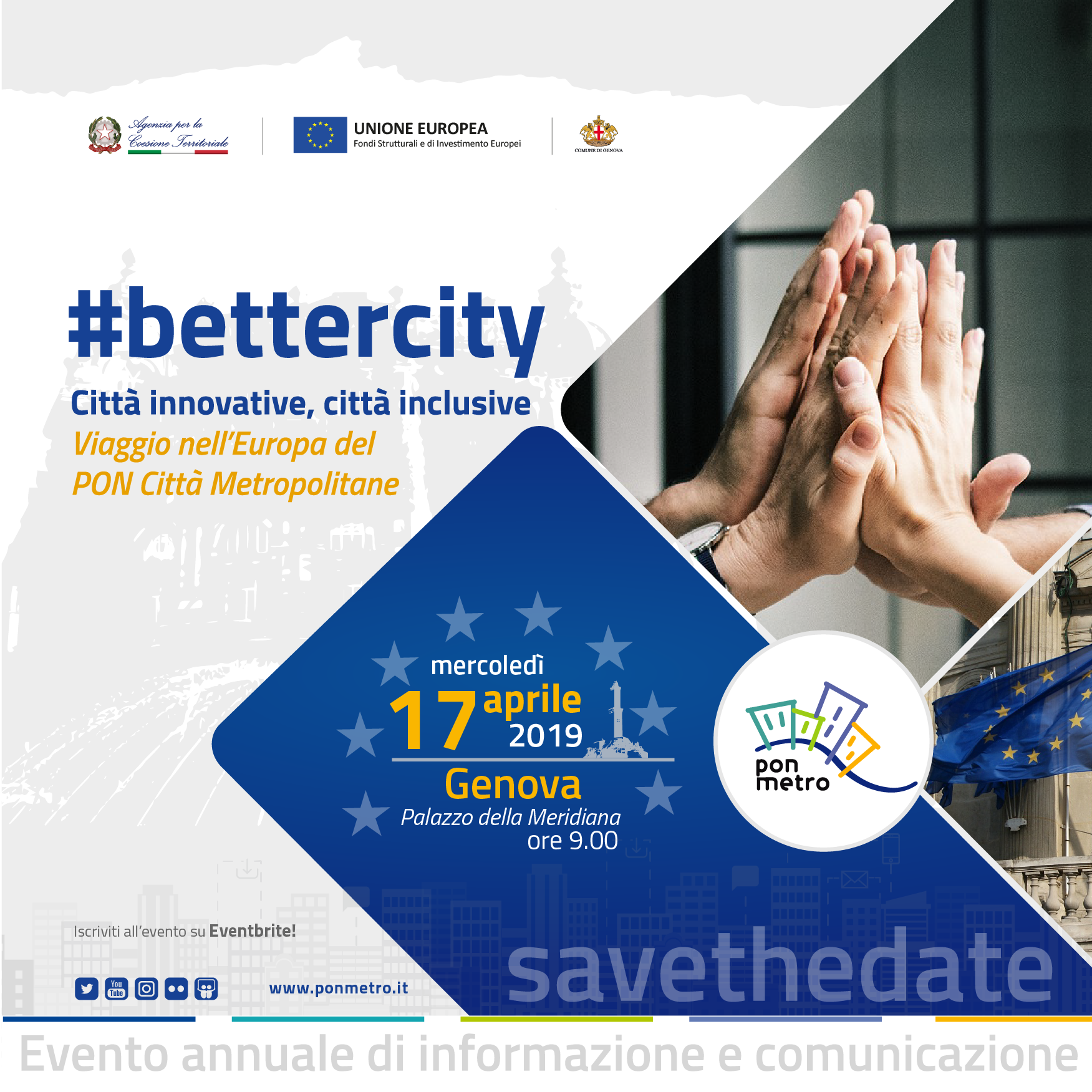 "#bettercity. Città innovative, città inclusive" è l’evento annuale di informazione e comunicazione del PON Città Metropolitane 2014-2020 dell'Agenzia per la Coesione Territoriale.