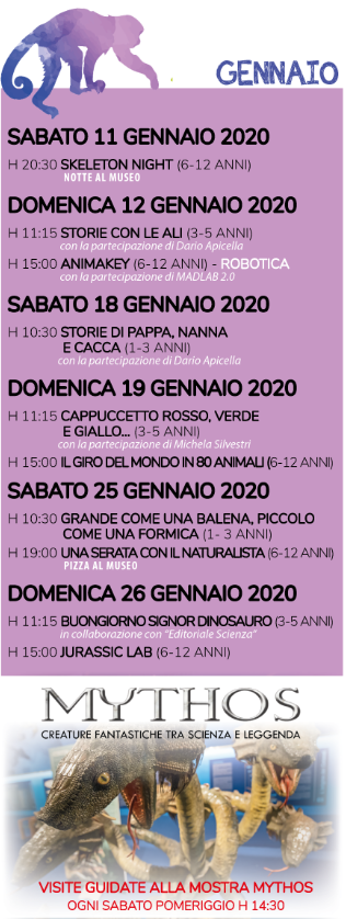 Tutte le attività dell' Associazione Didattica Museale ADM, previste al Museo di Storia Naturale per il mese di gennaio.