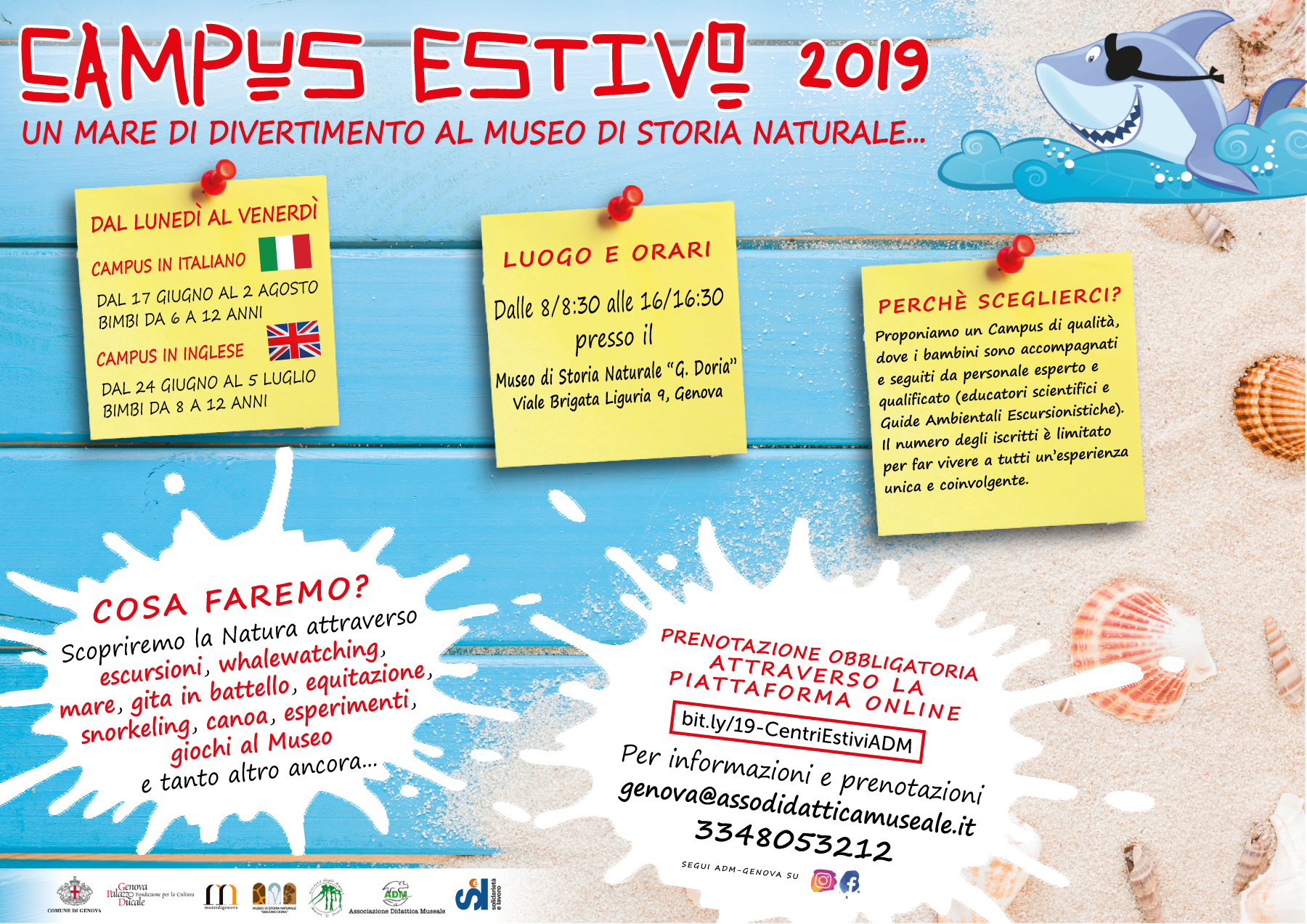 I centri estivi curati da ADM – Associazione Didattica Museale, che si svolgeranno presso il Museo di Storia Naturale "G. DORIA" di Genova sono la scelta ideale per coniugare svago e scoperta, perché è soprattutto divertendosi che i bambini imparano al meglio.