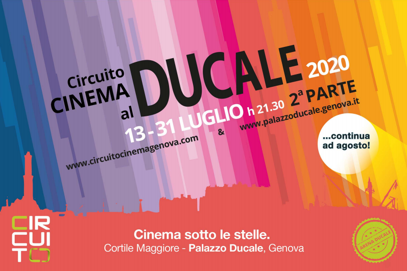 Dopo il successo del festival Genova Reloaded che si è chiuso con due tutto esaurito per Zerocalcare, Valentina Lodovini ed Elio Germano, Lunedì 13 Luglio 2020 prosegue la programmazione di “Circuito Cinema al Ducale” con la consueta programmazione dell’arena estiva che in questa seconda parte prosegue fino al 31 luglio e che chiuderà la stagione il 30 agosto. L’organizzazione è a cura di Circuito, in collaborazione con Genova Palazzo Ducale.