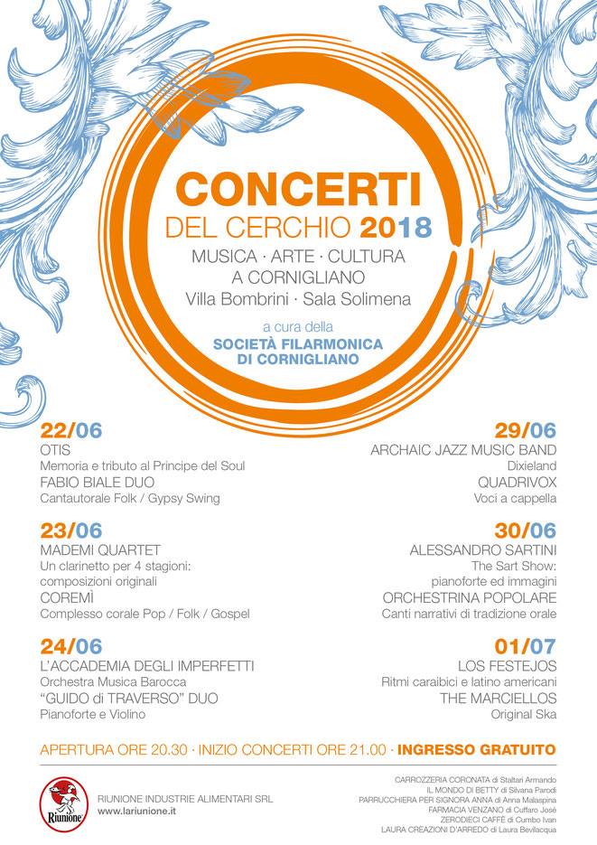 Villa Bombrini si riempie di musica con "I Concerti del Cerchio" a cura della Società Filarmonica di Cornigliano.Dal 22 giugno al primo luglio un susseguirsi di concerti per tutti i gusti: soul, catautorato, barocco, musiche caraibiche e altro ancora.Tutti i concerti sono ad ingresso gratuito con apertura porte alle 20:30 e inizio alle ore 21.Di seguito il programma completo e la locandina dell'evento: