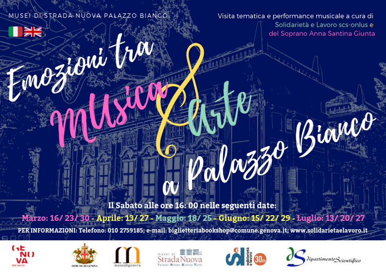Una selezione di capolavori esposti a Palazzo Bianco saranno ispiratori di una visita non tradizionale, che proporrà intermezzi musicali tipici della tecnica del "recitar-cantando", dove l'uso sapiente della parola e del canto mira a far emergere quei sentimenti ed emozioni che la visione delle opere d'arte è in grado di suscitare.