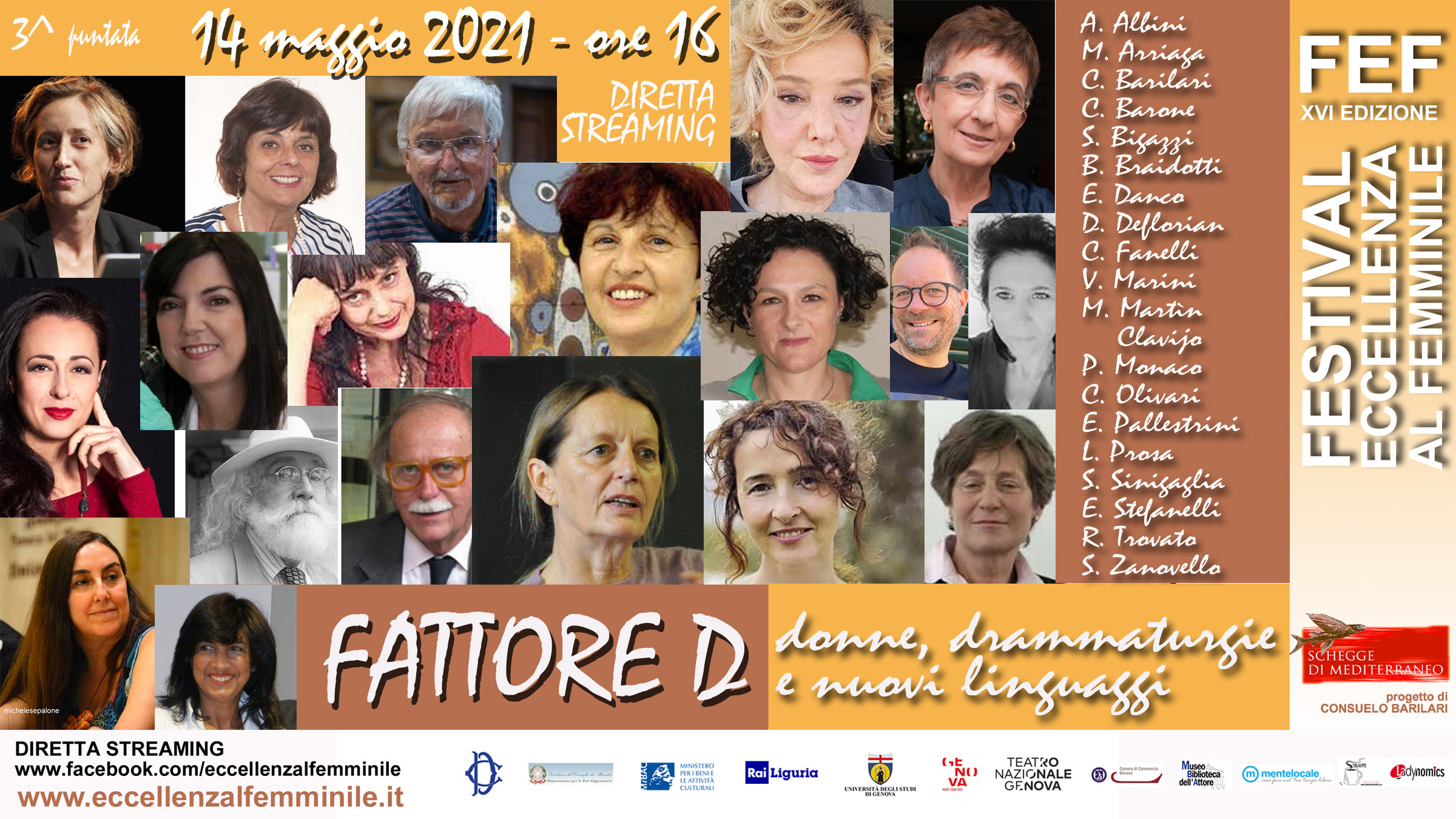Il 14 maggio alle ore 16 si svolge online il terzo incontro di Fattore D - Donne, drammaturgie e nuovi linguaggi.