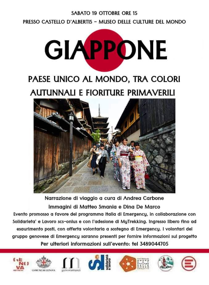 Sabato 19 ottobre 2019 alle ore 15 avrà luogo l´incontro GIAPPONE Tra colori autunnali e fioriture primaverili, narrazione di viaggio a cura di Andrea Carbone e proiezione di immagini digitali di Matteo Smania e Dina De Marco.