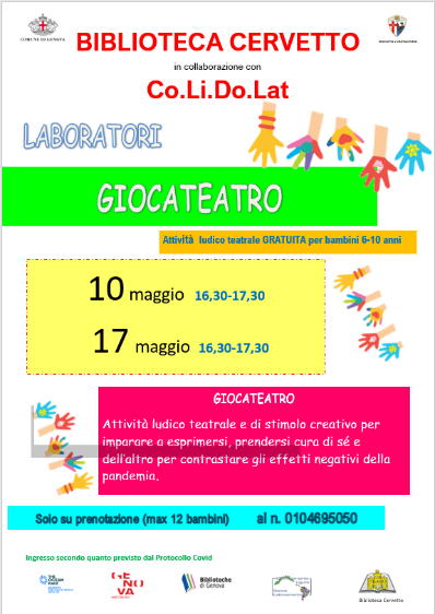 Laboratorio 6-10 anni (max 12 bambini )in collaborazione con Co.Li.Do.Lat (Coordinamento ligure donne latino-americane).