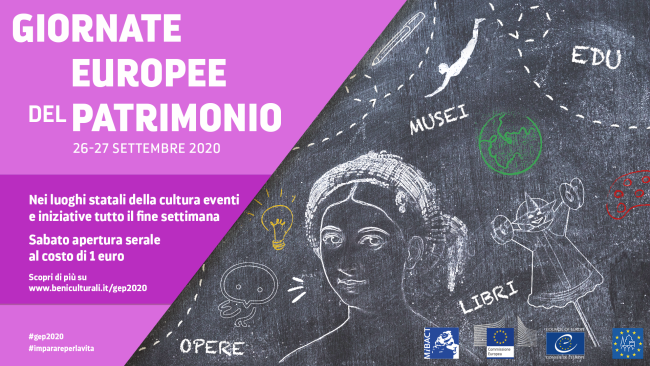 Sabato 26 e domenica 27 settembre, nei Musei e nei luoghi di cultura di tutta Italia, torna l'appuntamento annuale con le Giornate Europee del Patrimonio (GEP 2020). Quest'anno lo slogan scelto dagli organizzatori è "Imparare la vita" e il tema è "Heritage and Education - Learning per Life".