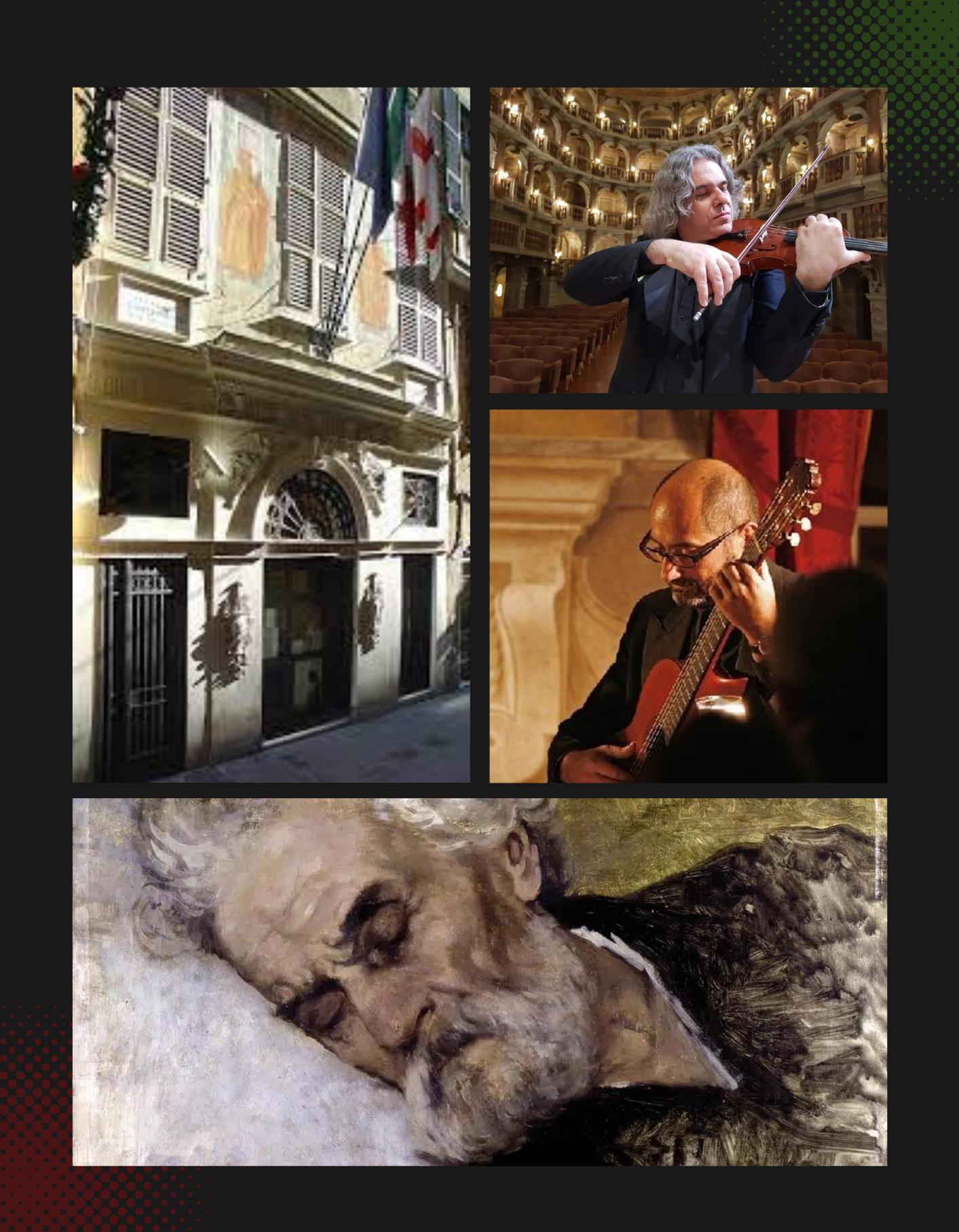 I brani sono intercalati da brani tratti dall’epistolario di Giuseppe Mazzini dedicati a Camillo Sivori. *Il M°José Scanu suona la chitarra appartenuta a Giuseppe Mazzini, la Gennaro Fabbricatore liutaio in Napoli del 1821, conservata al Museo del Risorgimento di Genova ed esposta nelle sale dedicate a Giuseppe Mazzini.