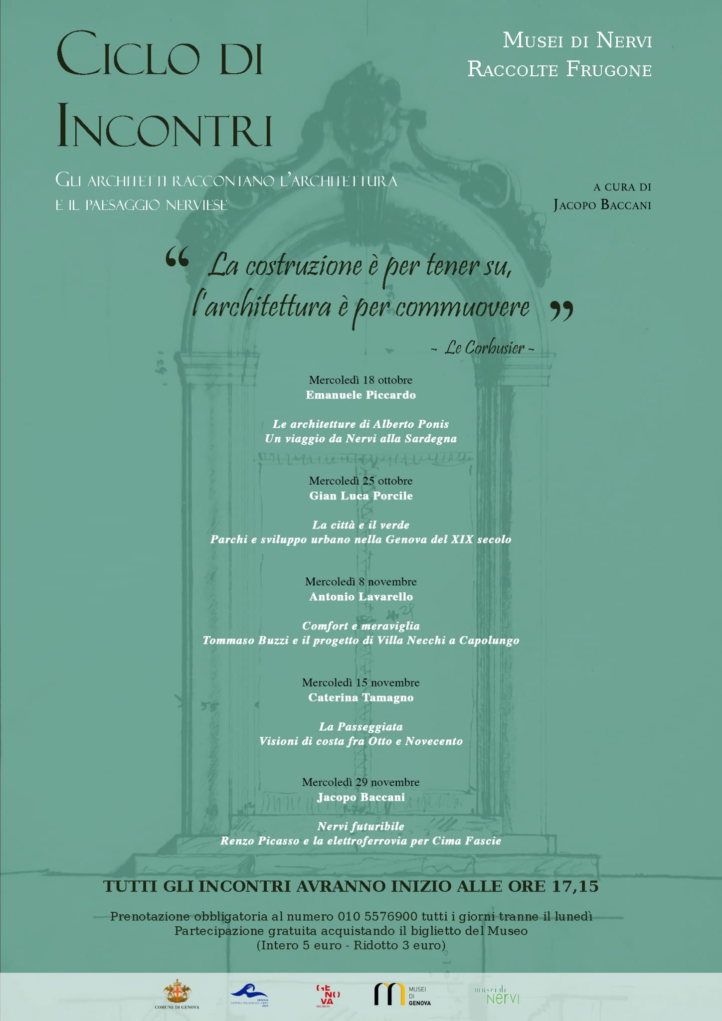 Un nuovo ciclo di incontri alle Raccolte Frugone a cura di Jacopo Baccani: gli architetti raccontano l'architettura e il paesaggio nerviese.
