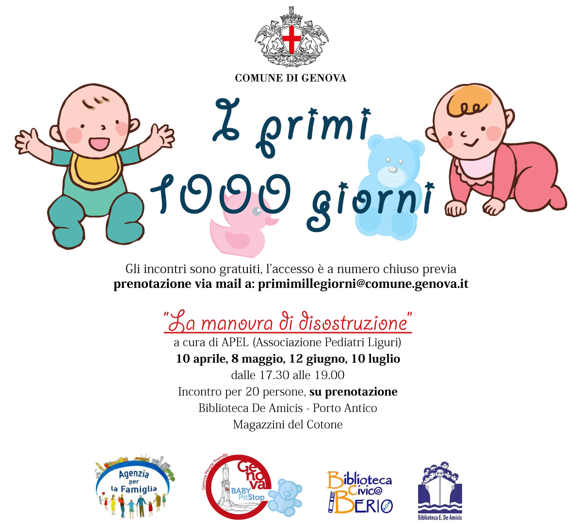 I neo genitori, ma anche i nonni e tutte le persone che si occupano del bambino in questa fase della vita, si potranno confrontare con il pediatra sulla sua alimentazione con dimostrazione della manovra di disostruzione. Gli incontri sono realizzati da APEL - Associazione Pediatri Liguri