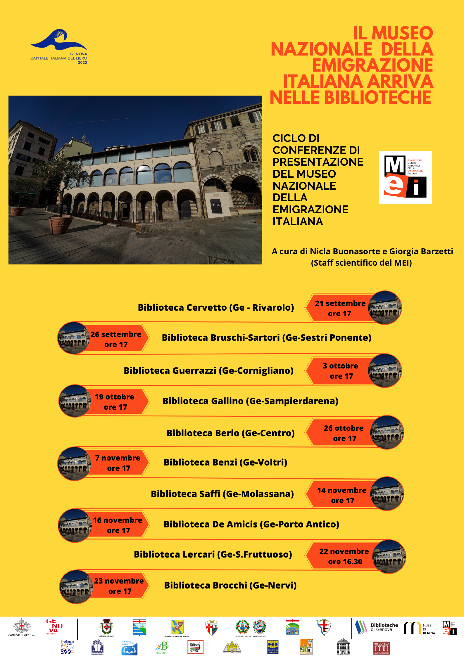 Nell’anno di Genova Capitale Italiana del Libro il Sistema Bibliotecario Urbano promuove un ciclo di incontri nelle biblioteche civiche in stretta sinergia con il MEI, il Museo nazionale dell'Emigrazione italiana, per raccontare le storie degli italiani nel mondo.