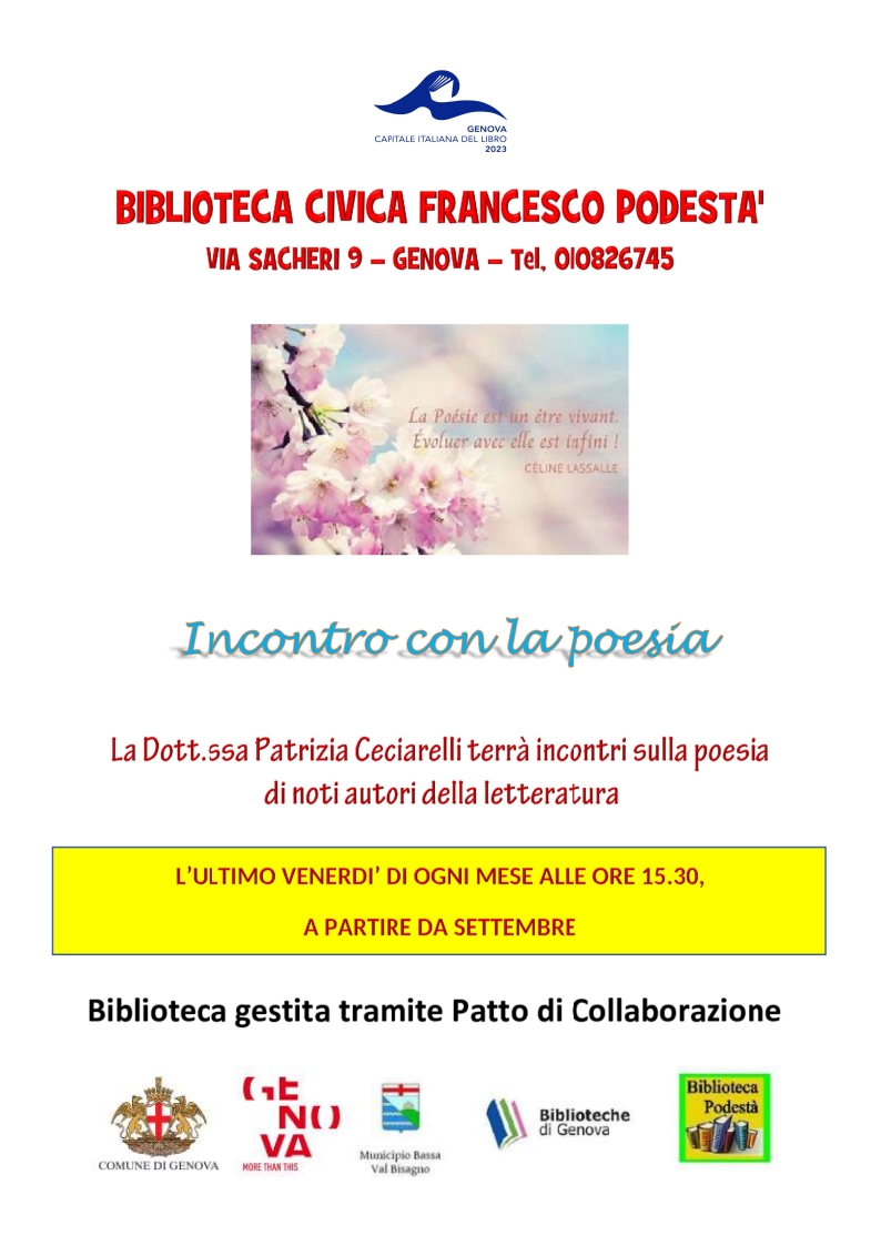 Incontri periodici in cui viene presentato un autore , la sua storia, la sua poetica, il rapporto con il tempo in cui ha vissuto, la sua tecnica di composizione e vengono lette le sue poesie.