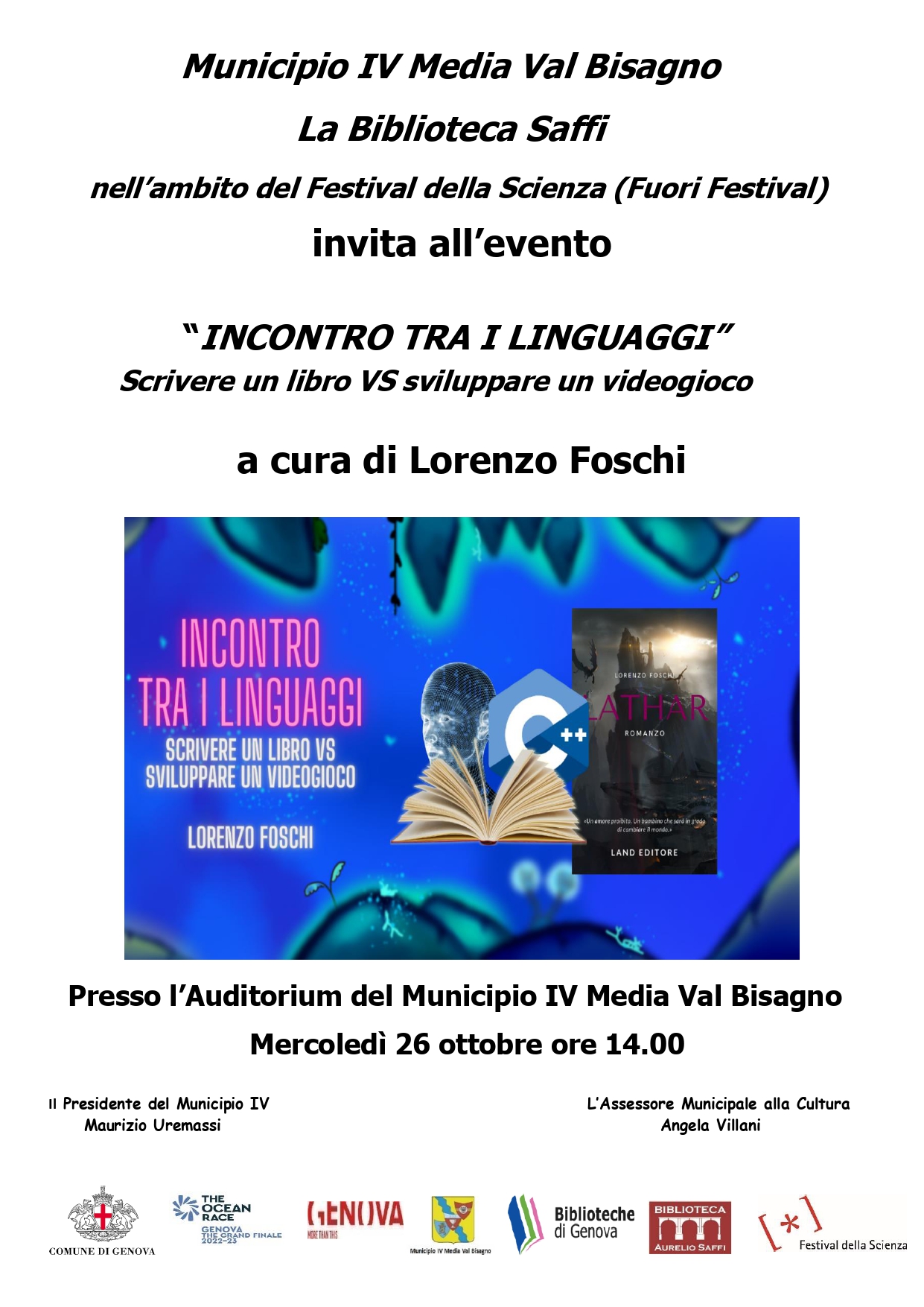 Le biblioteche del sistema urbano del Comune di Genova accompagnano con entusiasmo la programmazione del Festival della Scienza 2022 con un calendario ricco di iniziative e di incontri tutti dedicati alla tematica "linguaggi".