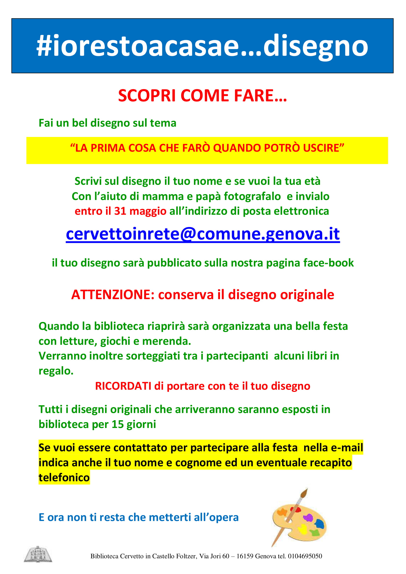Il tuo disegno sarà pubblicato sulla nostra pagina facebook e quando la biblioteca riaprirà potrai partecipare ad una bella festa con giochi,letture e premi.