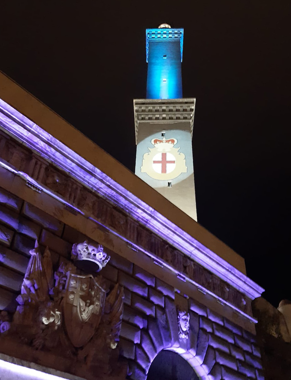 Il monumento simbolo di Genova, come i più famosi del mondo, cambia il colore della sua illuminazione per attirare l'attenzione dell'opinione pubblica sui tempi più importanti. A 690 anni dall'installazione, nel 1326, del "lanternino" a olio dal quale il faro prese il nome, la Lanterna è stata dotata di un nuovo sitema di illuminazione artistica realizzato grazie al supporto di Slam, inaugurato il 14 marzo 2017.