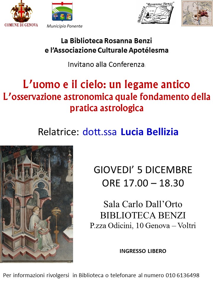 Conferenza “L’uomo e il cielo: un legame antico. L’osservazione astronomica quale fondamento della pratica astrologica”.