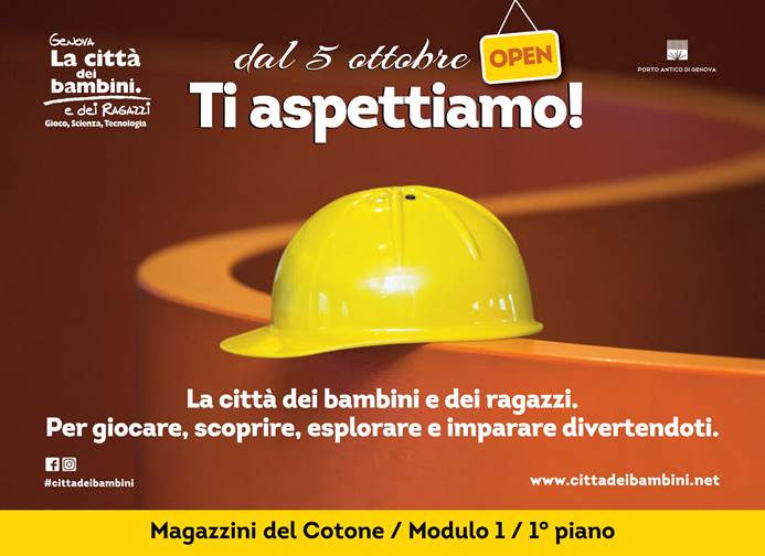 Sabato 5 ottobre alle ore 11:00 La Città dei Bambini e dei Ragazzi riapre dopo l’annuale chiusura per manutenzione. Il luogo dove bambini e ragazzi possono partecipare ad attività attraverso l’osservazione, la manipolazione, la sperimentazione vi aspetta per iniziare un nuovo anno all'insegna delle scoperte.