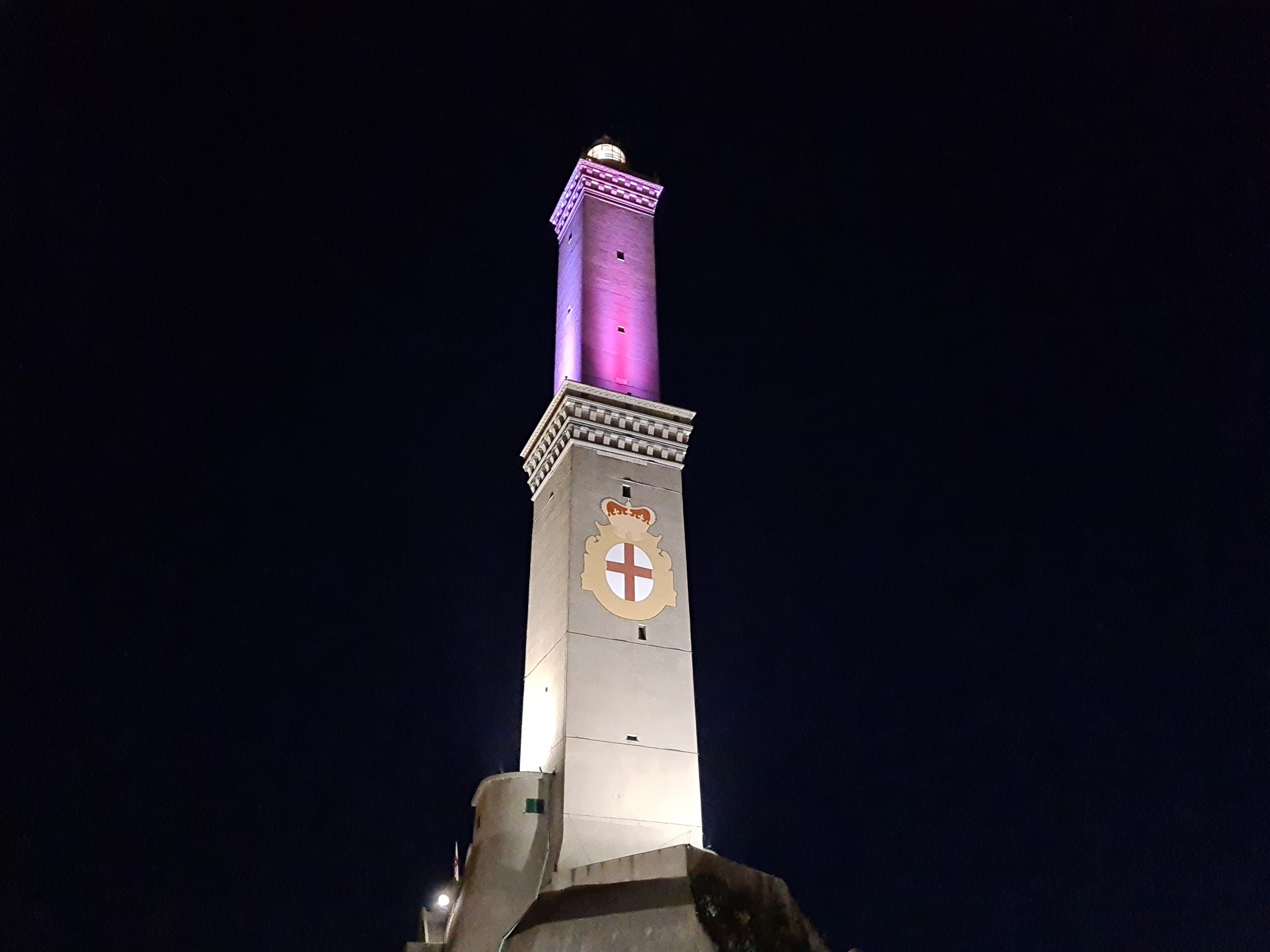 Giovedì 24 giugno anche la Lanterna di Genova festeggia la Festa di San Giovanni Patrono di Genova, illuminandosi al tramonto con il bianco e il rosso dei colori della città.