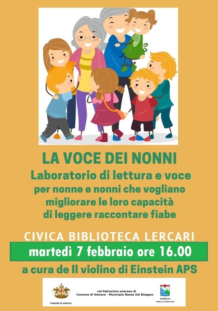 Ospiteremo in Biblioteca un laboratorio organizzato dall’ associazione Il Violino di Einstein dedicato ai nonni che vogliano migliorare la loro capacità di leggere e raccontare fiabe ai più piccoli
