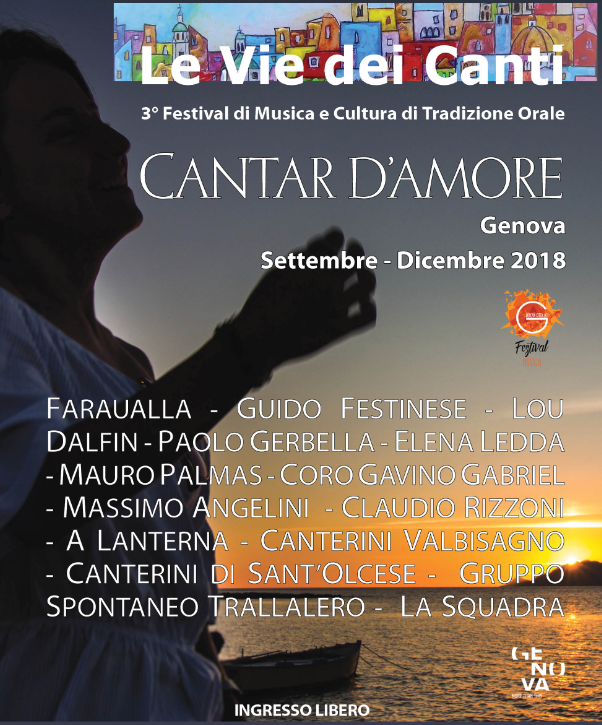 La 3° edizione del Festival Le Vie dei Canti, che fa parte della rete Genova Città dei Festival, organizza il concerto dal titolo Sonos, Ballos e Cantos de sa Sardigna, che si tiene il giorno domenica 18 novembre 2018, alle ore 16.00, presso la Sala del Minor Consiglio del Palazzo Ducale di Genova.
