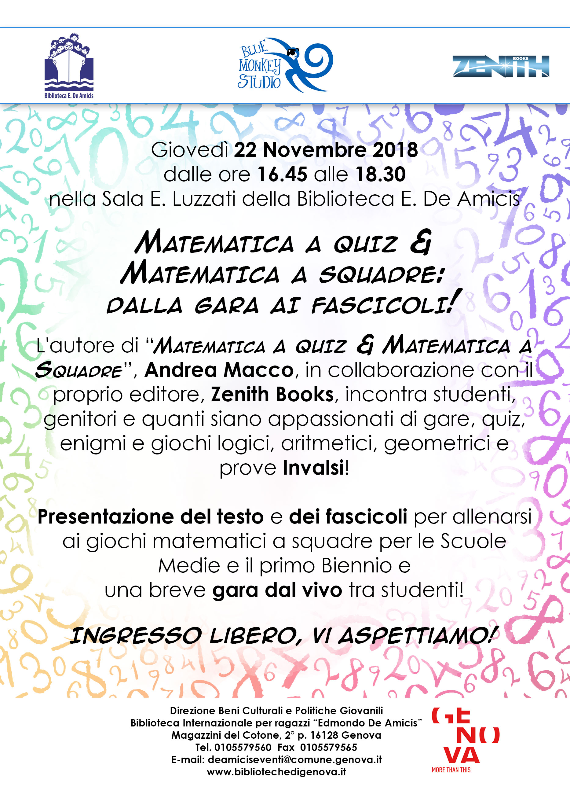 Andrea Macco, autore dei libri, in collaborazione con l'editore Zenith Books, incontra studenti, genitori quanti siano appassionati di gare, quiz, enigmi e giochi matematici e prove Invalsi.