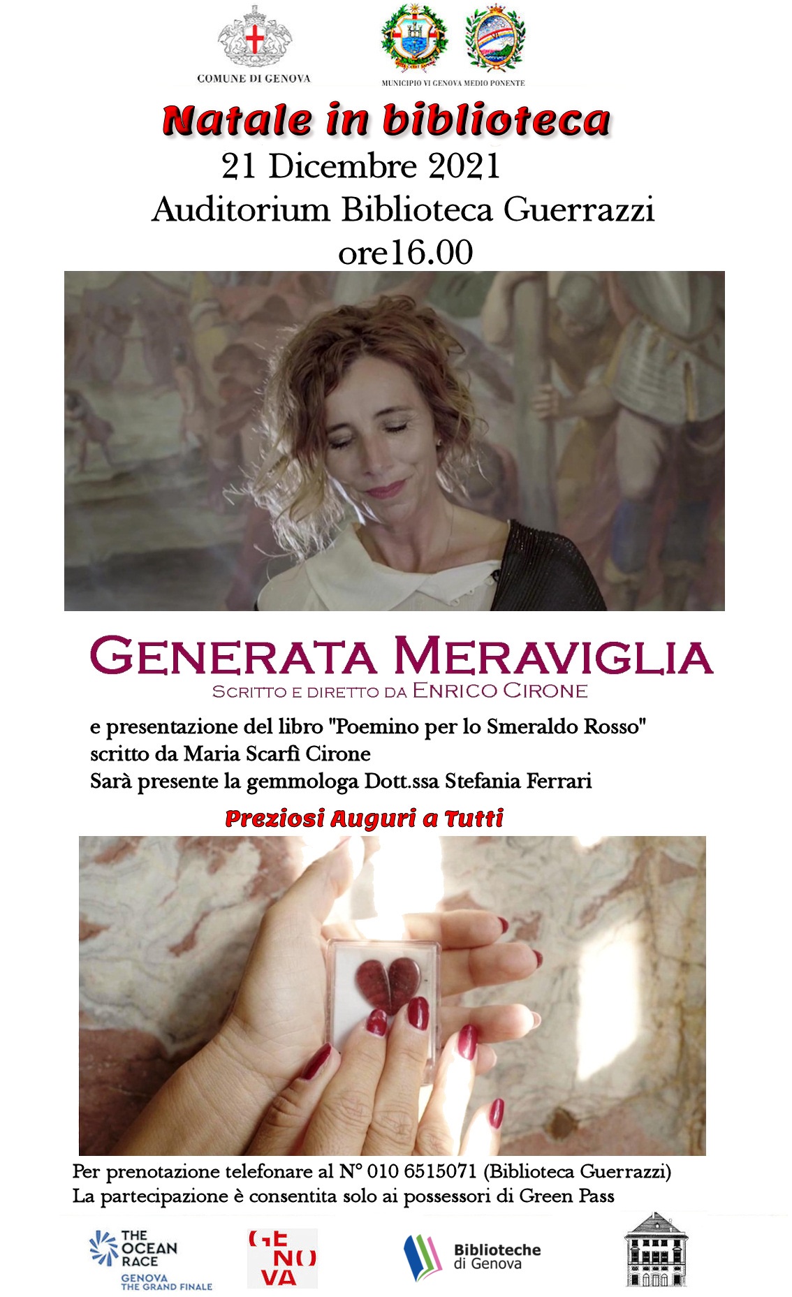 Proiezione del cortometraggio “Generata Meraviglia” a cura di Enrico Cirone, presentazione del libro “Poemino per lo Smeraldo rosso” . Sarà presente la gemmologa Dott.ssa Stefania Ferrari.