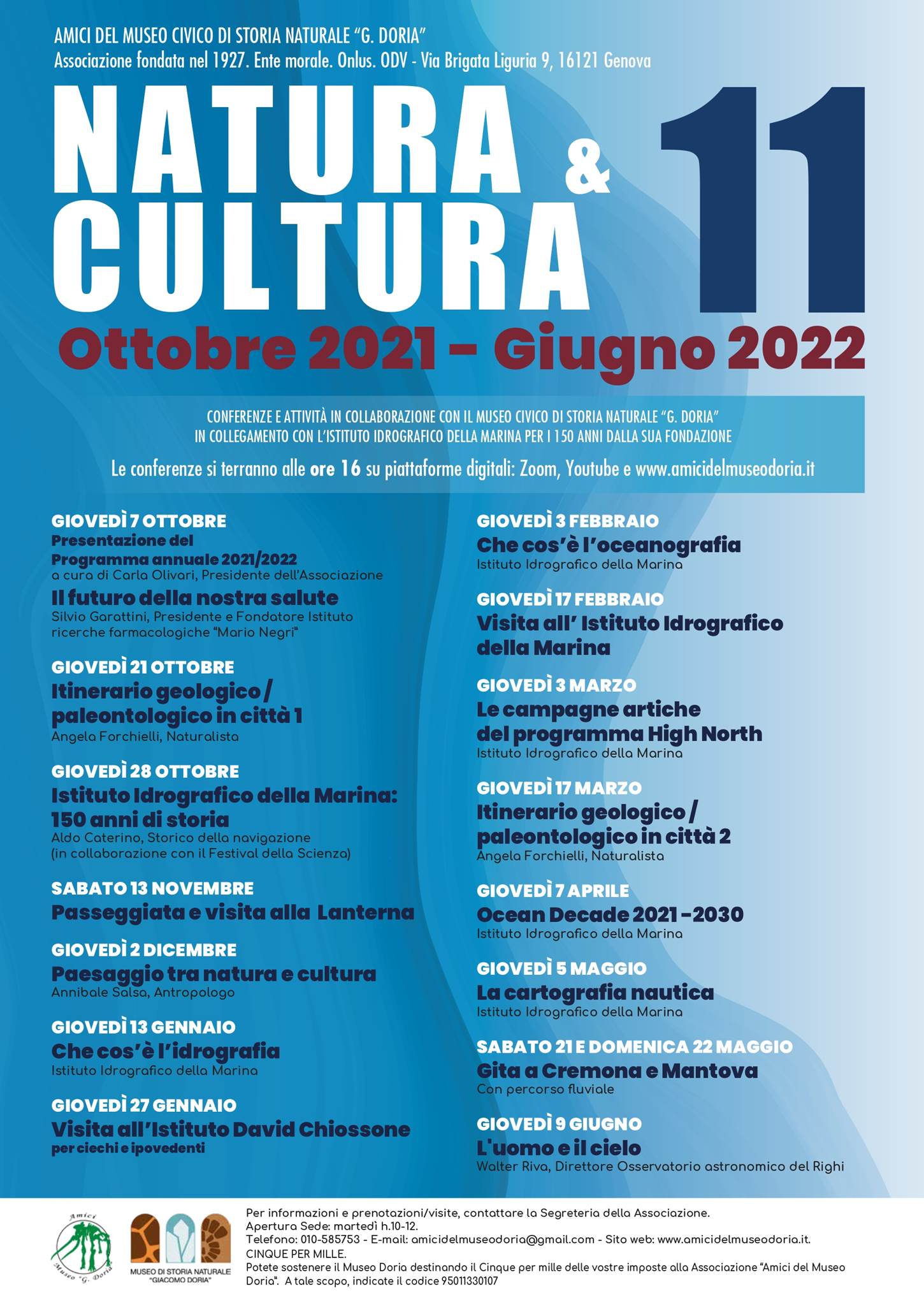 La Società degli Amici del Museo di Storia Naturale "G. Doria" organizza in collaborazione con il Museo un ciclo di conferenze e altre attività in collegamento con l'Istituto Idrografico della Marina per i 150 anni dalla sua fondazione.