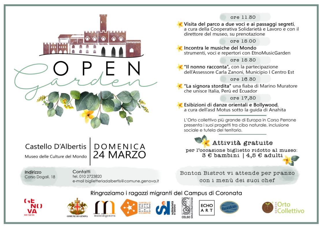 Al Castello D'Albertis domenica 24 marzo arriva Oper Garden, una serie di iniziative che spaziano tra musica, danza e fiabe per bambini,  con il fine di promuovere il museo e il parco nel quale è inserito.