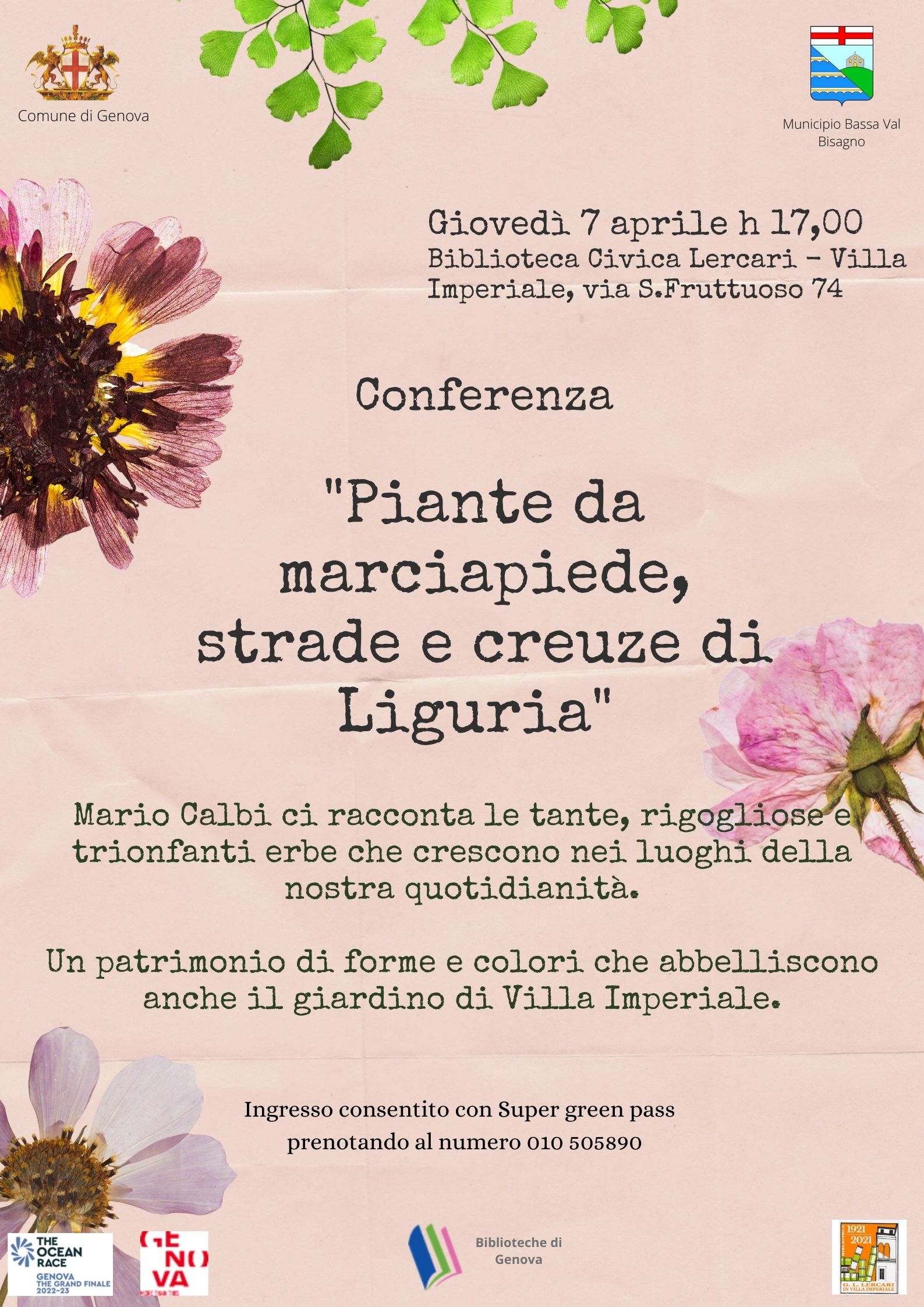 Prenotazioni: 010 505890 - lercari@comune.genova.it