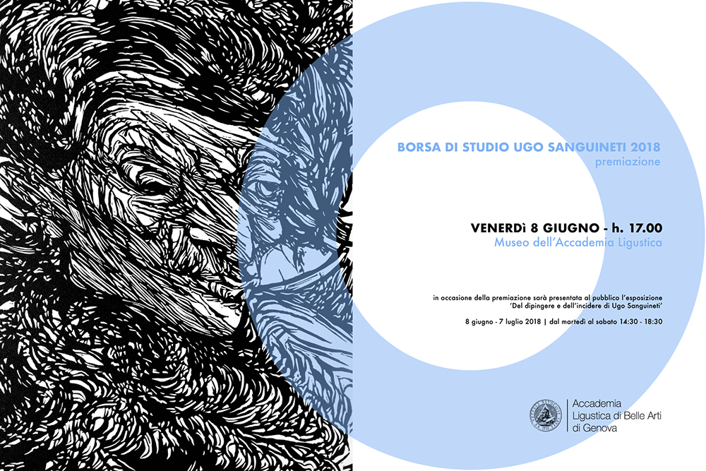 Venerdì 8 giugno alle ore 17.00 presso la sede dell'Accademia Ligustica di Belle Arti viene assegnato il premio Ugo Sanguineti borsa di studio finalizzata a sostenere la formazione artistica, promuovendone l’eccellenza, a favore degli studenti iscritti all’Accademia Ligustica di Belle Arti di Genova nell’Anno Accademico 2017/2018. In occasione della Premiazione viene presentata al pubblico nelle sale del Museo dell'Accademia Ligustica l'esposizione Del dipingere e dell'incidere di Ugo Sanguineti a cura di Giulio Sommariva che resterà aperta al pubblico fino a sabato 7 luglio. Il titolo della rassegna di opere grafiche che accompagna la premiazione della Borsa di studio Ugo Sanguineti, prende in prestito quello di un raffinato volumetto che, stampato in soli 300 esemplari, Vico Faggi dedicava nel 1989 all’amico pittore-incisore.La mostra è aperta da martedì a sabato dalle ore 14.30 alle ore 18.30.Per maggiori informazioni consultare il sito.
