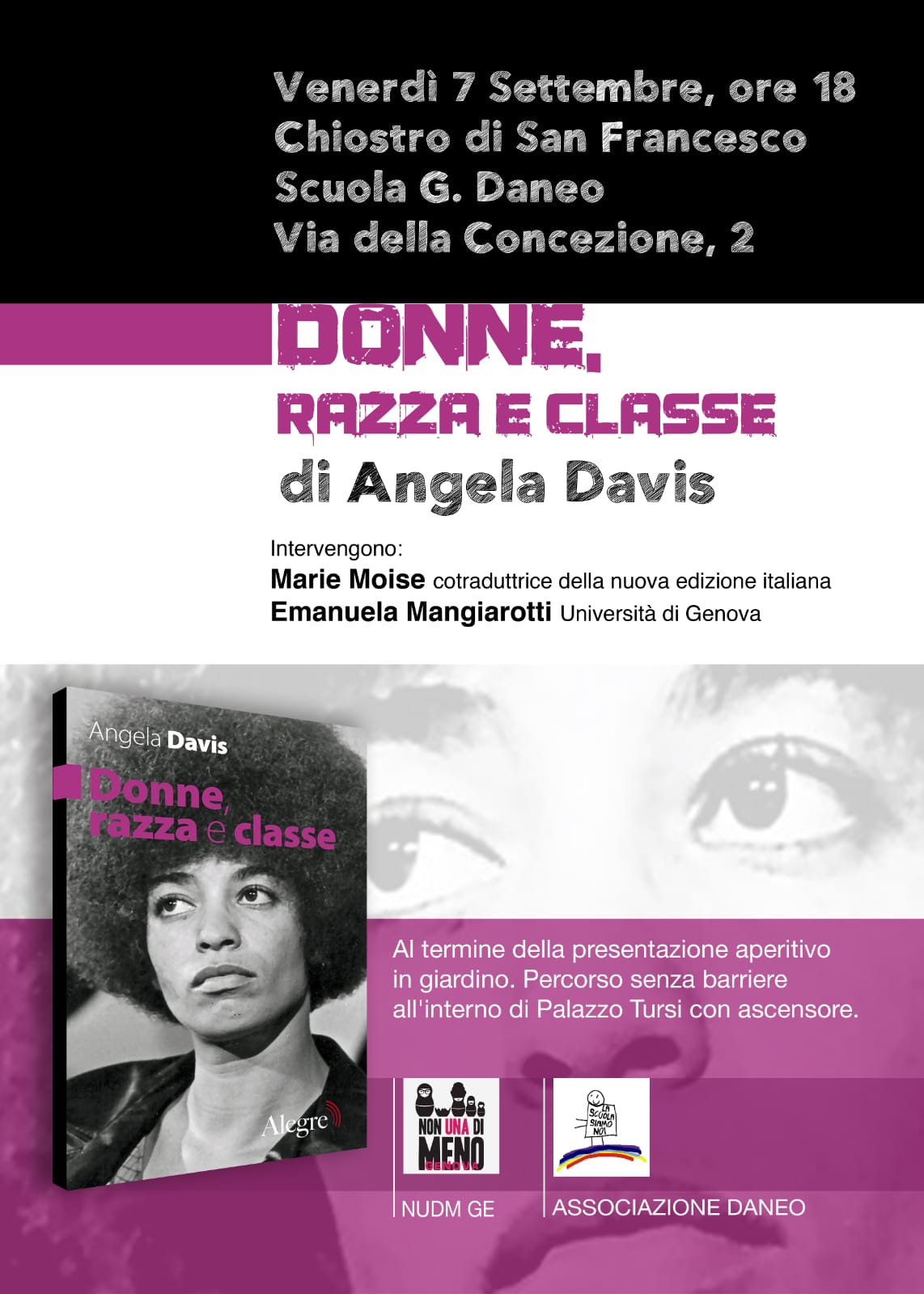 Venerdì 7 settembre alle 18 presso il Chiostro di San Francesco, Scuola G. Daneo si tiene la presentazione del libro "Donne, razza e classe" di Angela Davis.