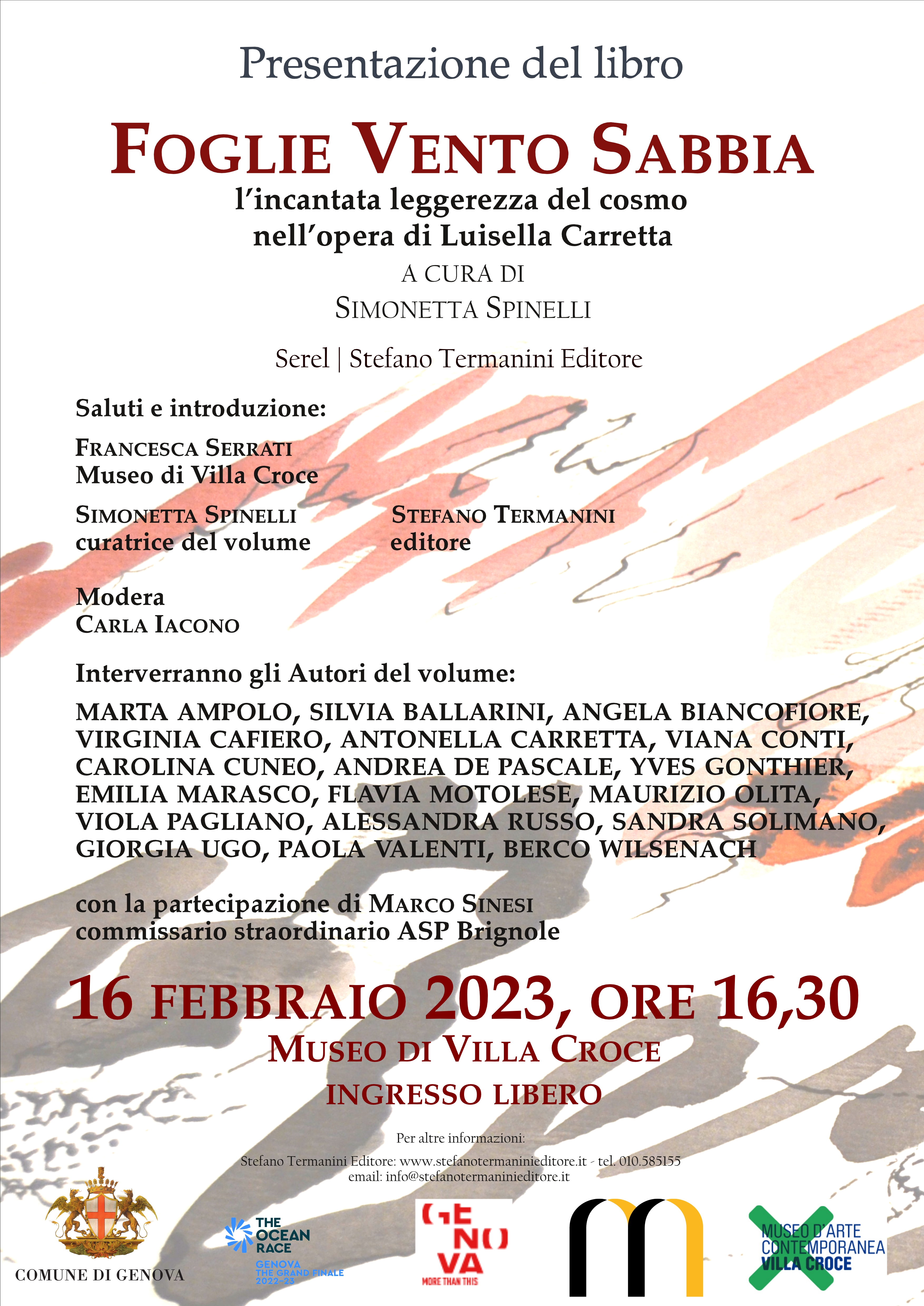 Saluti e introduzione di Francesca Serrati (Museo di Villa Croce), Simonetta Spinelli (curatrice del volume) e Stefano Termanini (editore). Modera Carla Iacono. Intervengono gli autori del volume. Con la partecipazione di Marco Sinesi (commissario straordinario ASP Brignole).