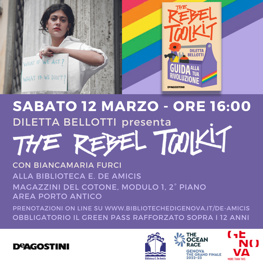 The Rebel Toolkit è una piccola guida agli strumenti che portano al cambiamento. Passione, empatia, indignazione, cura, paura, emancipazione, prassi, umiltà e speranza sono gli “attrezzi del mestiere” per chi vuole essere pronto alla sfida: trovare la forza, il coraggio e la voglia di fare, vincere il timore di non essere all’altezza, ma anche sapersi fermare a riflettere prima di agire. Queste pagine sono per i ribelli di oggi, fatte perché siano lette, ma anche perché ci si possa scrivere sopra un appunto, un pensiero, un desiderio. Possono essere condivise con chi si sente solo nel combattere per i propri ideali, o con chi vorremmo accanto mentre lottiamo per raggiungere il nostro. Buona Rivoluzione!