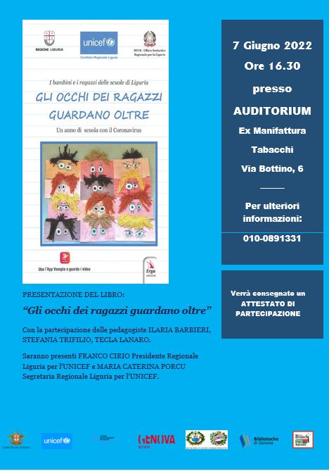 Giovedi 7 giugno ore 16.30 presetazione del libro " Gli occhi dei ragazzi guardano oltre" con la partecipazione delle pedagogiste: