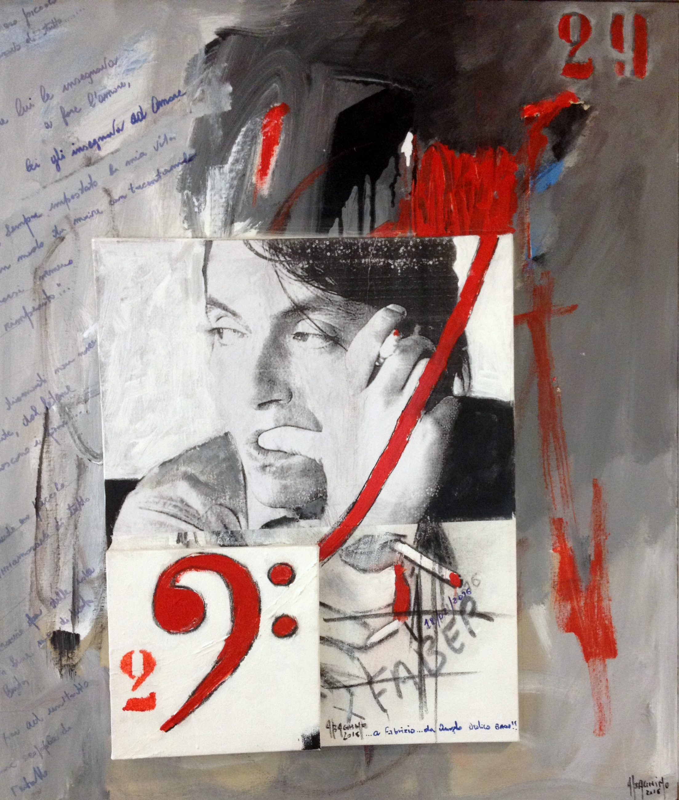 Tra le opere, spicca quella dedicata al mitico Faber, la cui immagine riprodotta sulla tela da Baghino lo ritrae in compagnia dei suoi amati tarocchi; ed è fortemente voluta la coincidenza del ventennale della scomparsa di De André con il numero di quadri esposti in mostra, venti appunto. L'esposizione sarà poi un'occasione per rivolgere un sentito pensiero a Don Andrea Gallo, anch'egli personalità iconica della Superba.