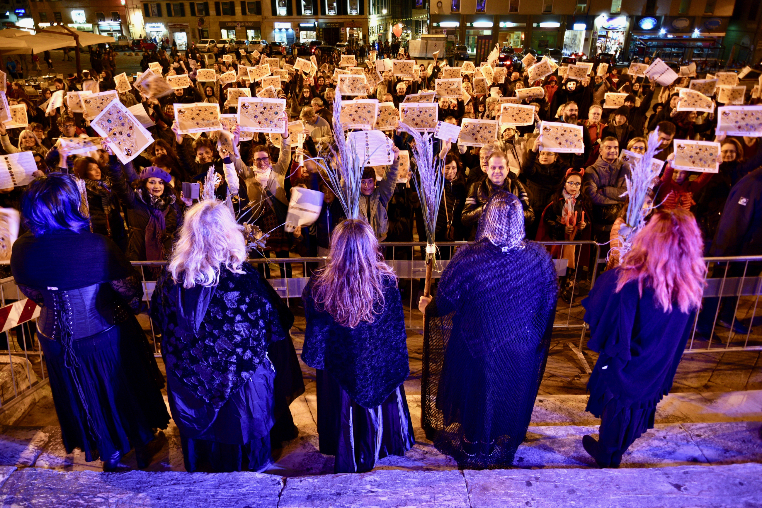 - Via Chiabrera (Spazio Giustiniani): La Bruja a Passo di TangoLa Bruja, di cui Juan D’Arienzo racconta, è una donna maligna che ha stregato il cuore di un uomo facendolo a pezzi coi suoi capricci e rendendolo schiavo dei suoi desideri. Ma ogni incantesimo prima o poi finisce e la vittima si libera e torna a sorridere alla vita, come canta il testo di questo indimenticabile tango. (Associazione Nazionale Maestri di Ballo).- Piazza Renato Negri: Viva E StrieUna simpatica leggenda, della tradizione popolare genovese, narra le vicende di due Streghe buone: Catann-a, viaggiatrice, temeraria, sempre alla ricerca di erbe per le sue pozioni e Maddalena, divertente, pasticciona sempre intenta ad aiutare il prossimo, senza esito alcuno. Riusciranno questa volta a realizzare i propri intenti? Lo scopriremo tra le note di queste canzoni. (Nuovo Gruppo Folcloristico Città di Genova)