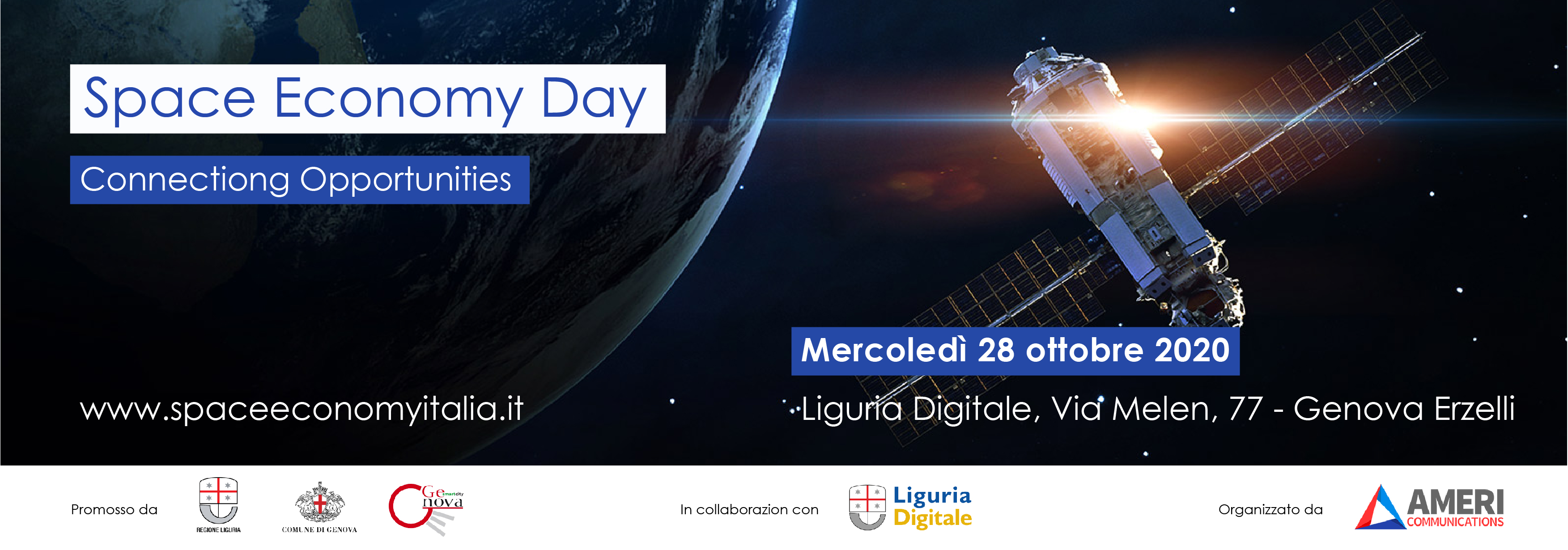 Lo Space Economy Day del 28 ottobre, promosso da Regione Liguria, Comune di Genova, Associazione Genova Smart City, in collaborazione con Liguria Digitale, e organizzato da Ameri Communications, esplorerà le opportunità economiche che la Space Economy rappresenta e può maggiormente rappresentare per il territorio ligure, creando un dialogo tra le realtà che già operano nel settore e tra quelle che potrebbero trovarvi nuovi sbocchi. L’obiettivo della giornata è quello di presentare alle realtà produttive la “space economy” e le sue ricadute in termini economici, occupazionali e di possibilità di accesso a finanziamenti. I relatori, di livello nazionale, avranno il compito di valorizzare tutti quegli aspetti che concorrono a fare della space economy un asset strategico anche per il nostro territorio.