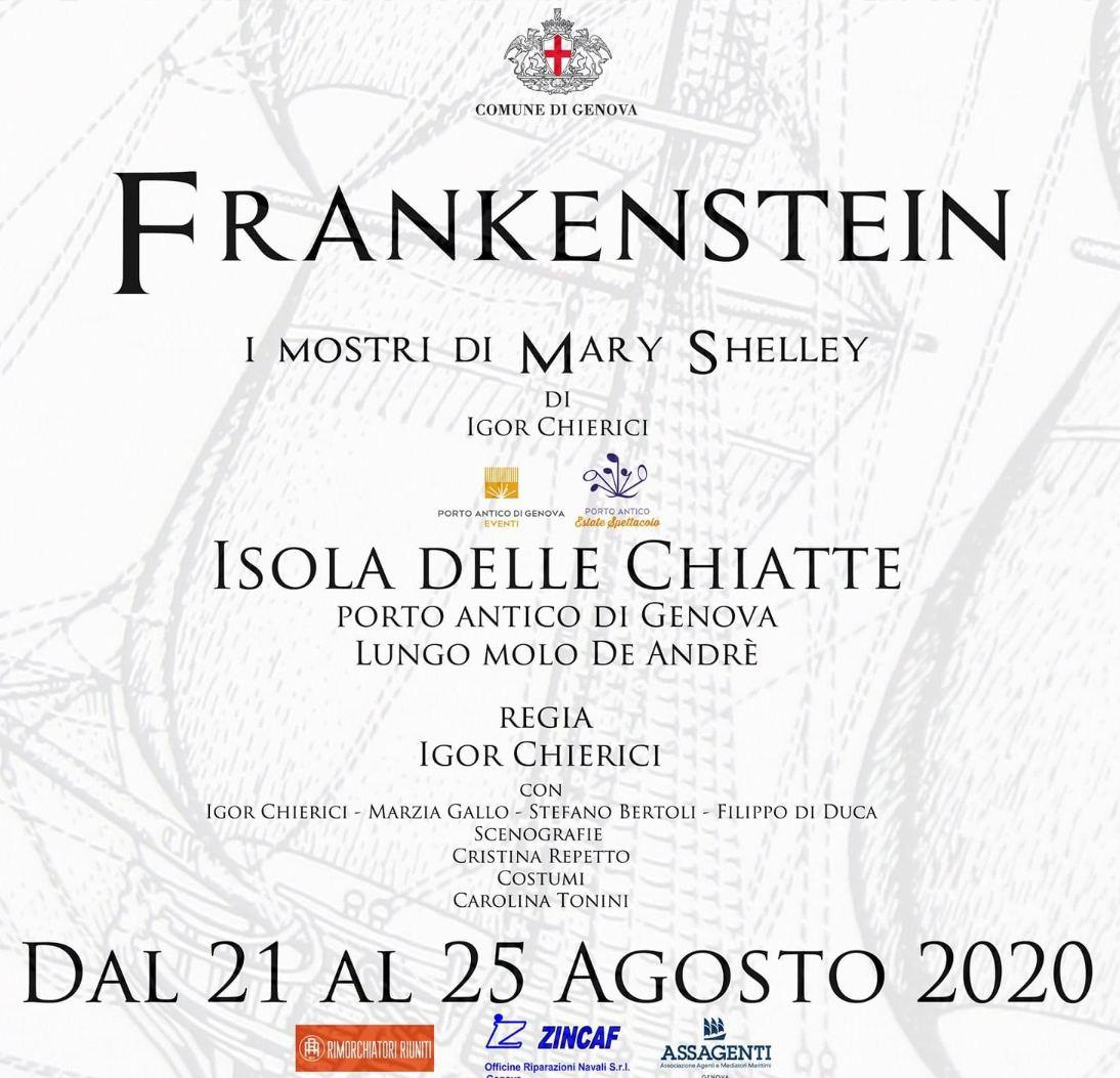 Dopo la leggenda del pianista sull'oceano, Moby Dick, Shackleton e Ulisse, arriva la nuova produzione all'Isola delle chiatte del Porto Antico di Genova: "Frankenstein e i mostri di Mary Shelley". Lo spettacolo ha luogo dal 21 al 25 agosto presso il Sea Stories Festival.