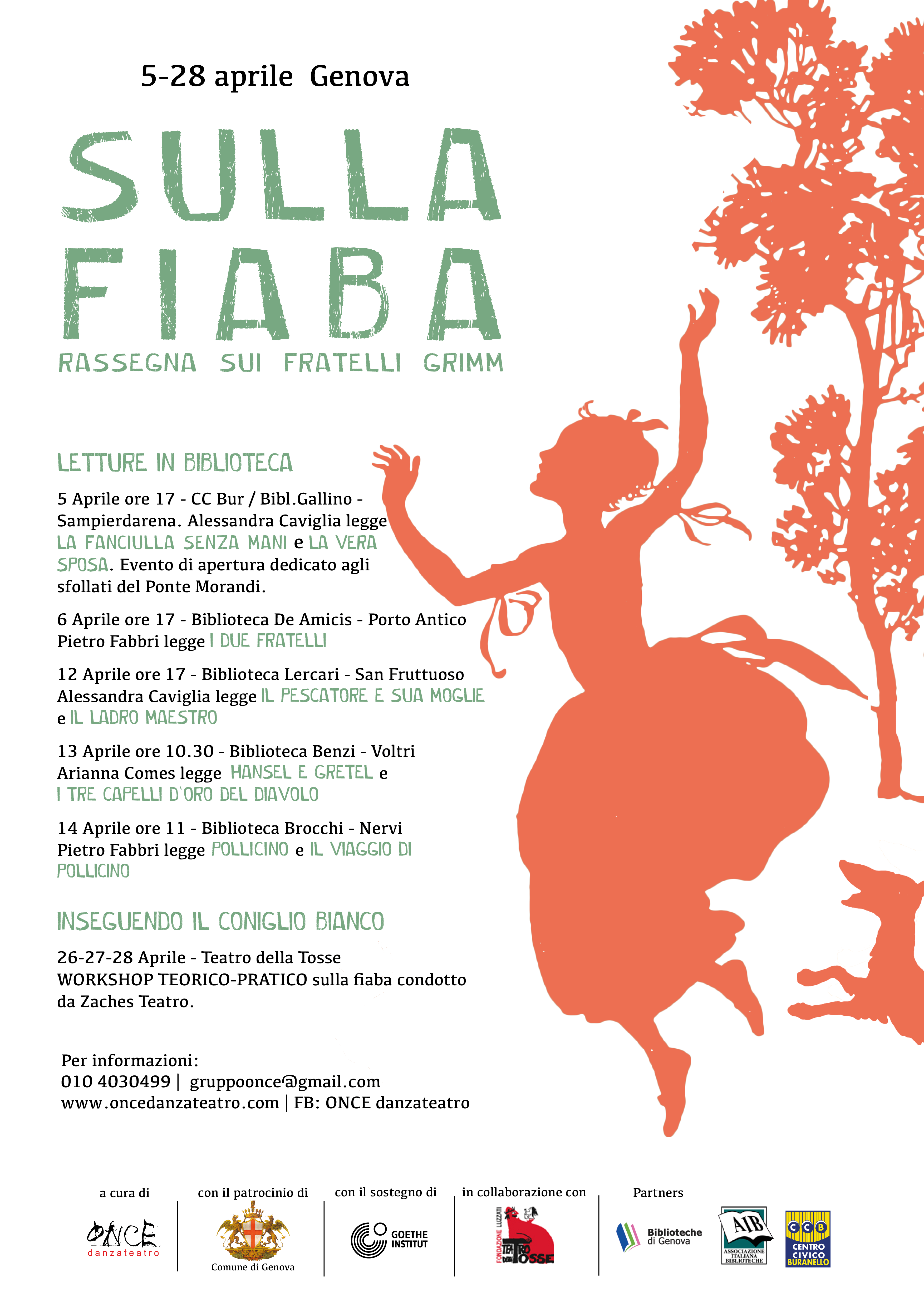 Progetto sulle fiabe a cura di ONCE, con il sostegno di Goethe Institut-Genua, in collaborazione con Teatro della Tosse-Fondazione Luzzati. Partner del progetto: Biblioteche di Genova, AIB Liguria, Centro Civico Buranello.
